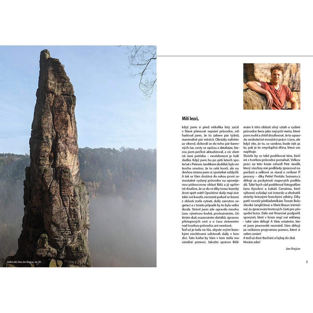 Průvodce lezeckou oblastí Bělá přináší první komplexní zpracování této lokality u Děčína. Autor Jan Krejcar zde zmapoval přes 1000 cest na 131 masívech a věžích, včetně cest sportovního charakteru.
