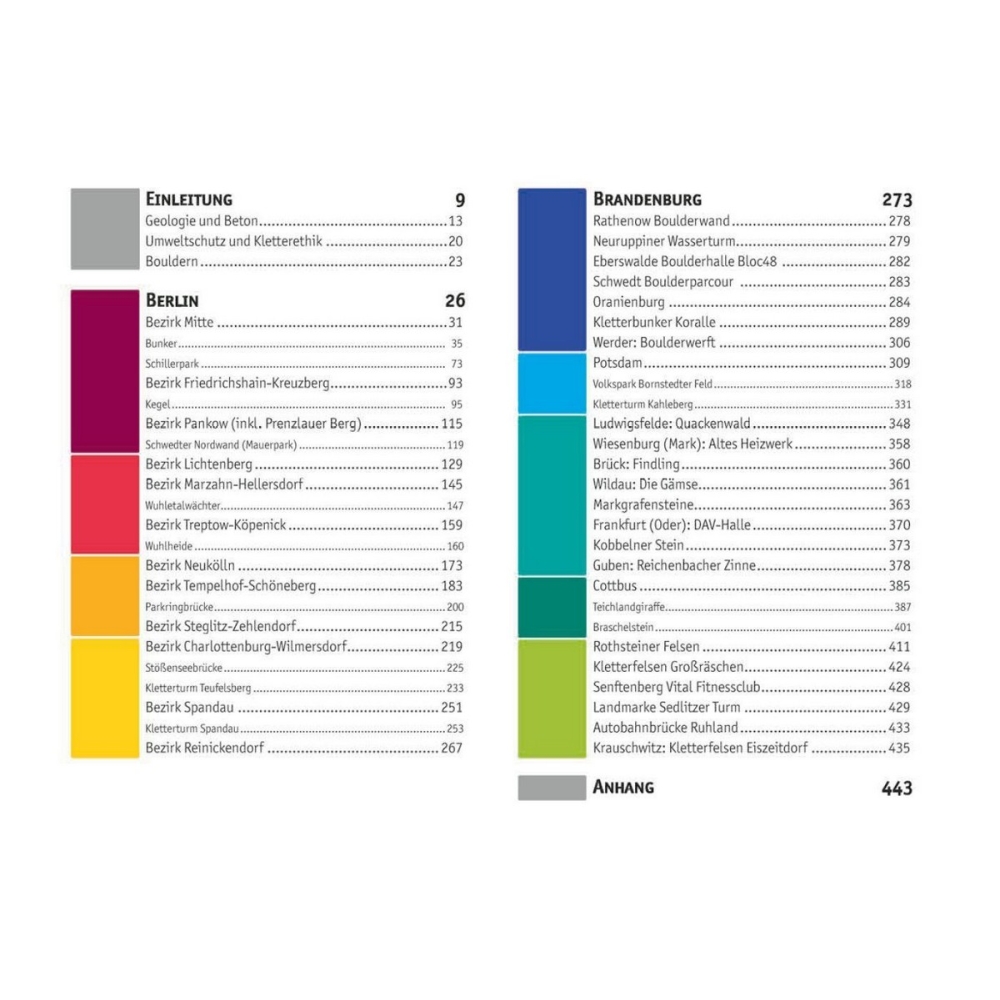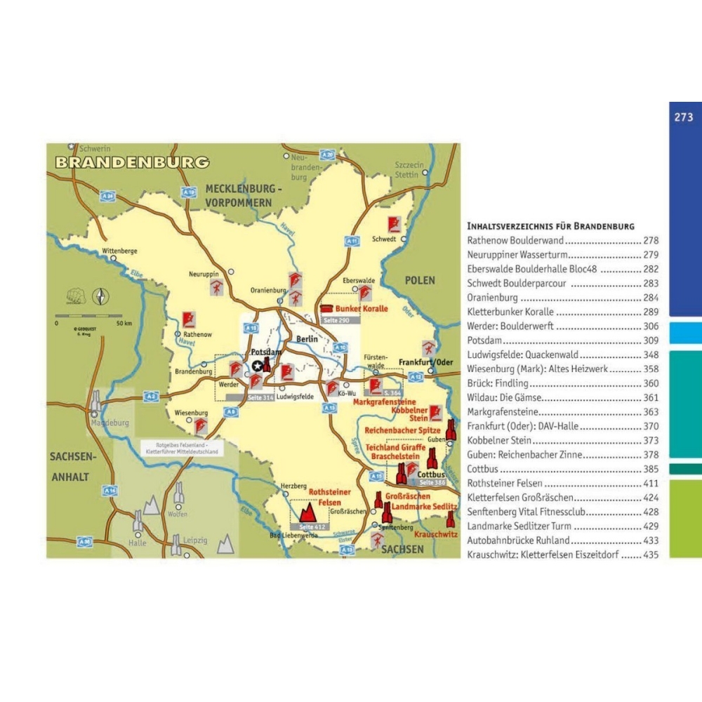A úplně na jihu jediná přírodní lezecká skála ve spolkové zemi Braniborsko. Kromě podrobných toposů jsou na 448 stranách příběhy o jednotlivých lokacích a rozsáhle informace o pozadí. Všechny lezecké a boulderingové stěny jsou také popsány.