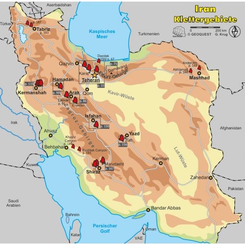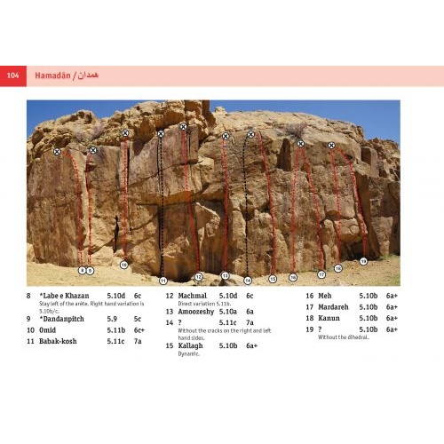 Lezecký a cestovatelský průvodce na Irán obsahující popis horolezeckých a bouldrových oblastí, popis vrcholu Damavand (5671 m) - horské túry s mapou a všemi informacemi, mapy, památky, malý slovník, informace o cestování a vízech, doporučení o tom, jak se chovat.