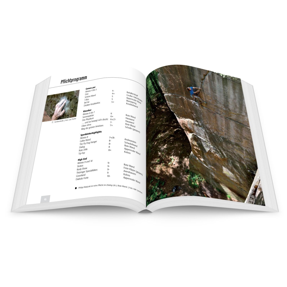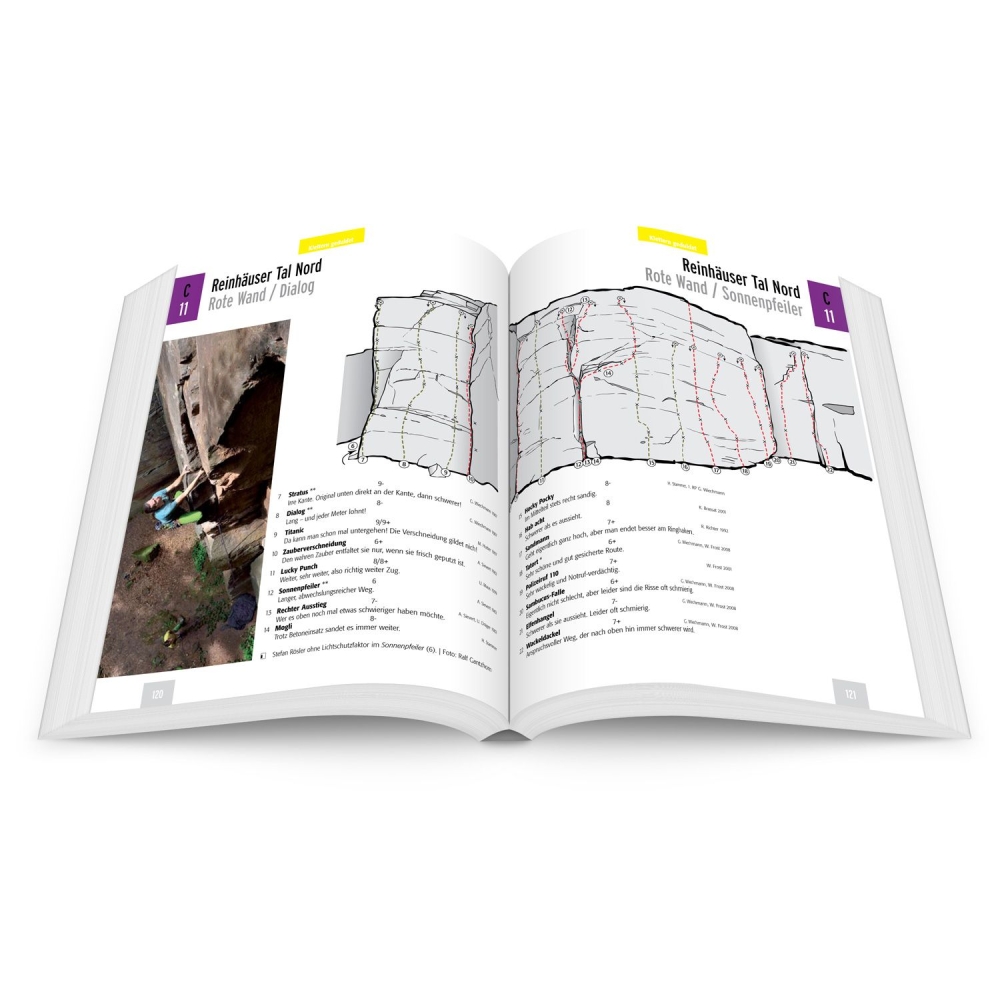 Pozoruhodné: téměř o 100 stran tlustší než první vydání, kolem 250 nových cest, které ještě nebyly publikovány! Se Scharfensteinem – čedič! – a lomu Solling se do horolezeckého průvodce dostaly dvě zcela nové oblasti. První jmenovaná je nejvýznamnější lezecká oblast v severním Hesensku, druhá je zatím velmi neznámá pískovcová skvrna u Fürstenbergu. Vzrušení je tedy dost. Abych nezapomněl: Kniha byla samozřejmě také kompletně reilustrována.