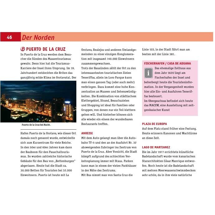 Poznámka: Lezecká oblast Martiánez ve městě Puerto de la Cruz byla bohužel uzavřena. Většina skal byla potažena sítěmi, takže se k nim nelze dostat. Je to velká škoda a – stejně jako mnoho jiných uzavírek skal v posledních letech (i v Německu) – zcela nepřiměřené opatření.