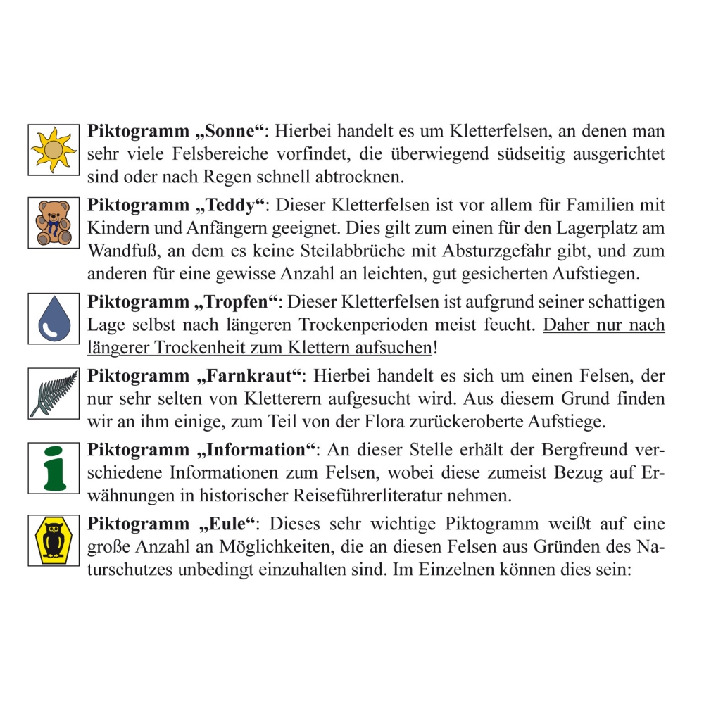 Klasický horolezecký průvodce ve stylu Saského pískovce s podrobnými slovními popisy cest a přesnými nákresy stěn shora. Průvodce pokrývá všechny vrcholy a cesty v Žitavských horách, včetně nově zpřístupněných oblastí, které si vyžádaly aktualizované vydání.