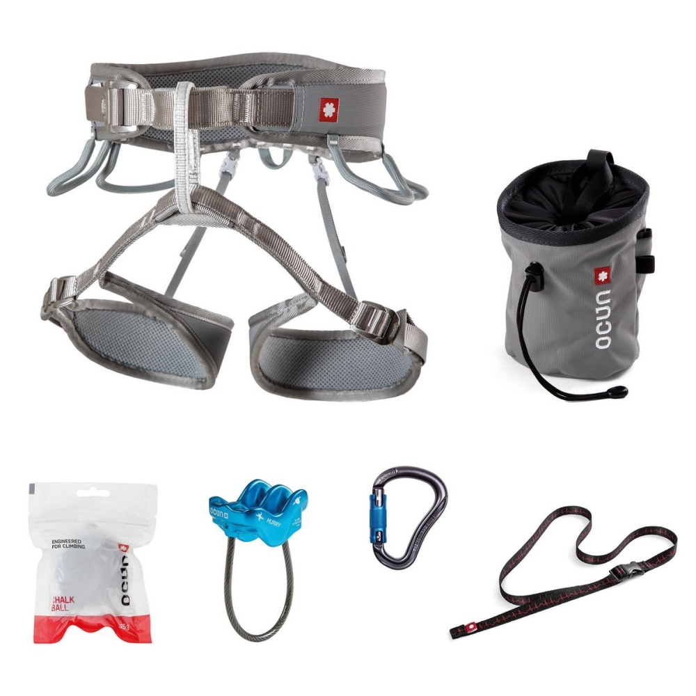 Úvazek Twist se základními doplňky jako kompletní vybavení pro začínající lezce.
