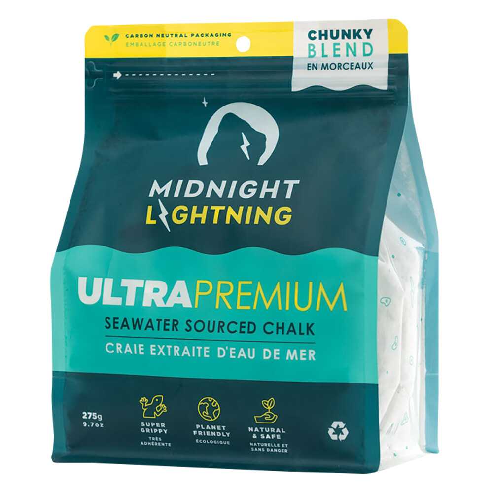 Midnight Lightning Seawater Sourced Chunky Blend Chalk je prémiová magnézie z mořské vody kombinující jemný prášek a větší kousky. Nabízí perfektní rovnováhu mezi přesným dávkováním, dobrou absorpcí a výborným třením.