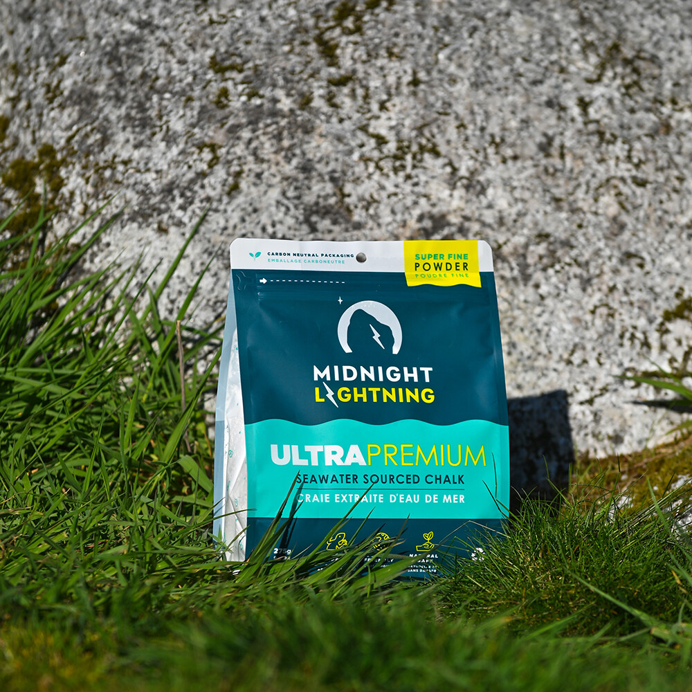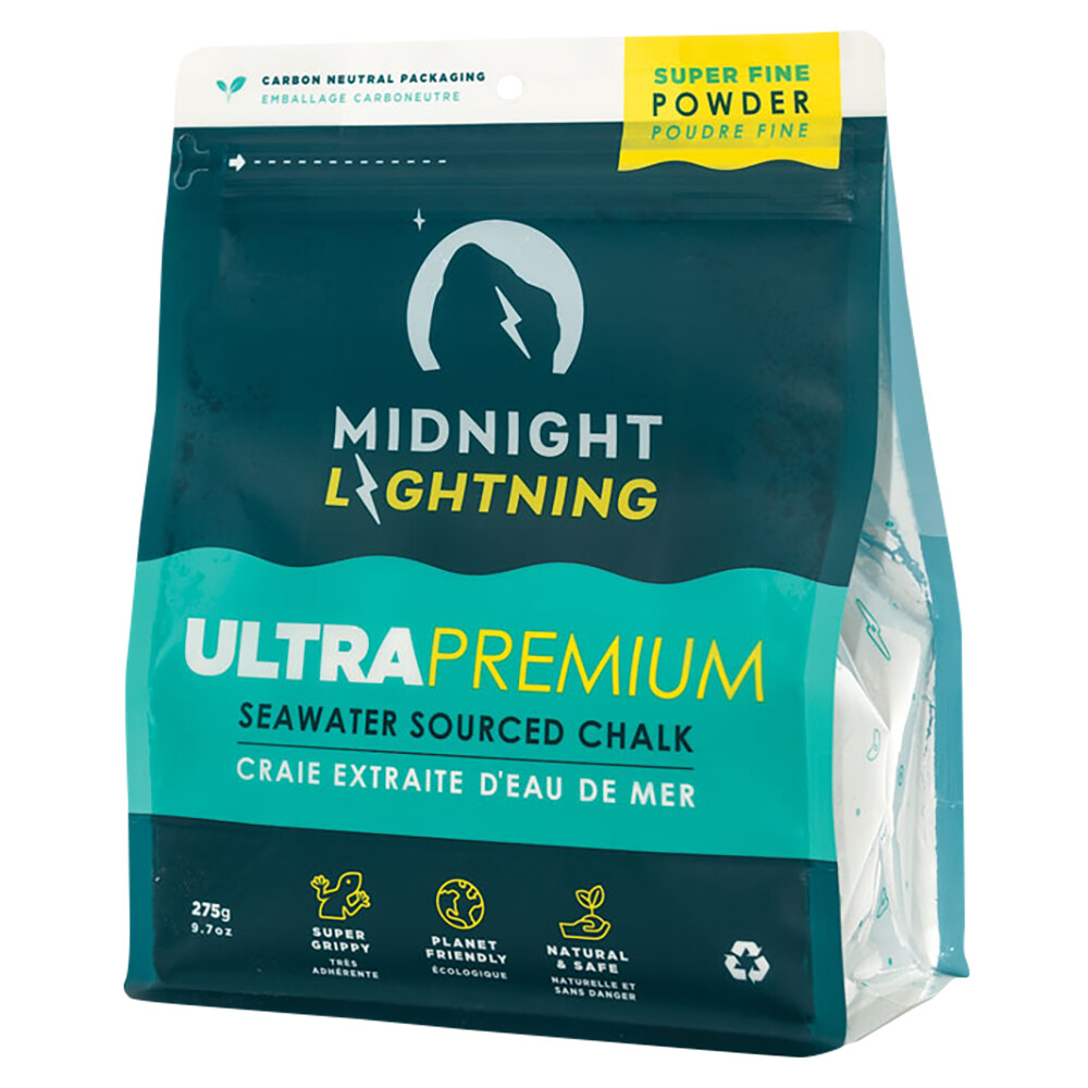 Midnight Lightning Seawater Sourced Powder Chalk je prémiová magnézie vyráběná z mořské vody – ekologická alternativa k tradičnímu dolování. Nabízí skvělou absorpci potu, čistý pocit na rukou a maximální tření pro sportovní lezení.