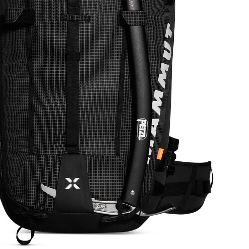 Tyto prvky zajišťují, že i při dlouhých túrách nebo technických výstupech je batoh stále komfortní na nošení. Trekové hůlky nebo cepíny snadno připevníte k speciálním držákům, zatímco lyže můžete upevnit do bočního držáku, který je navržen tak, aby se o ně postaral s maximální péčí.