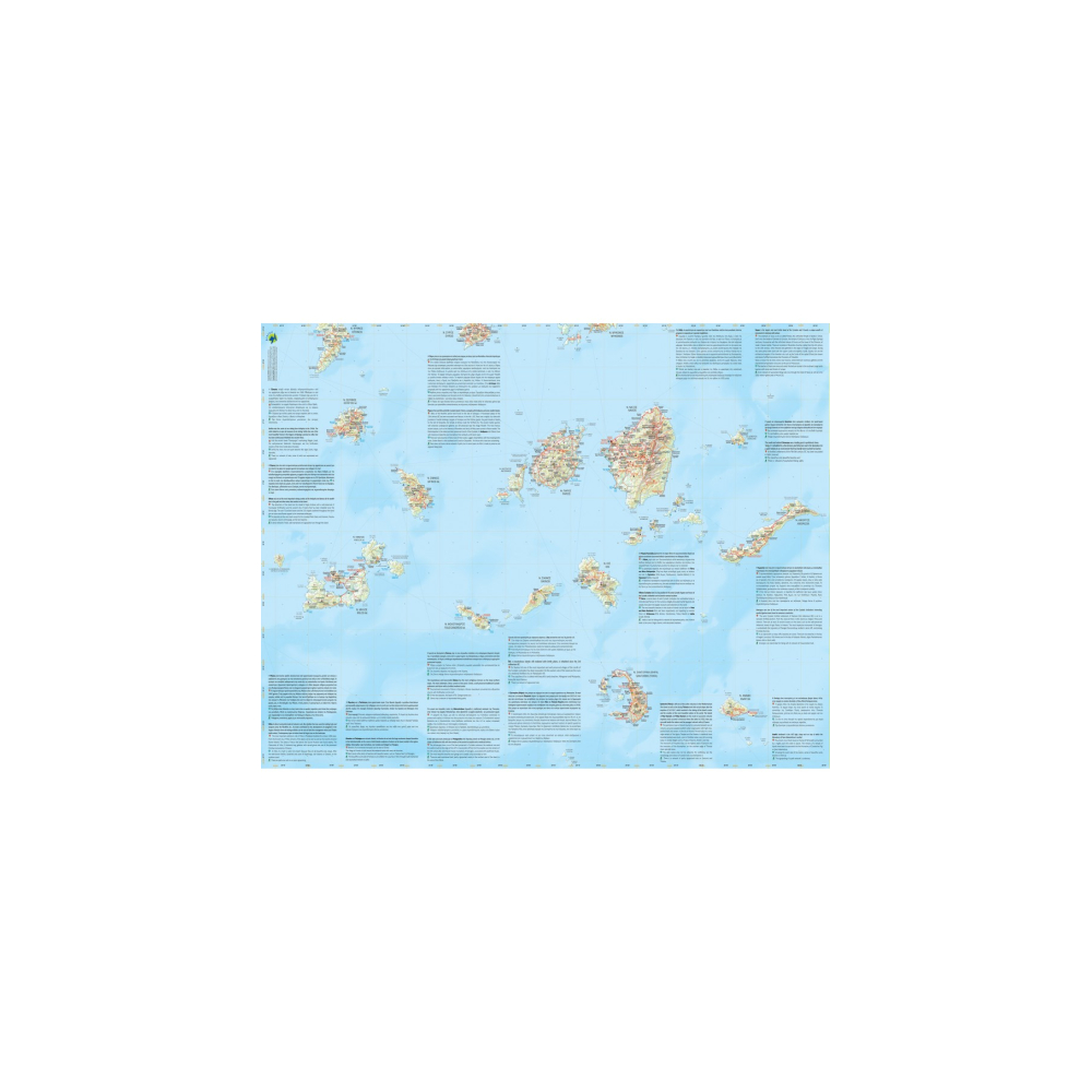 Velmi užitečná mapa, zejména pro výlety po ostrovech, s krátkým textem pro každý ostrov představující hlavní památky, vynikající pláže a turistické stezky každého z nich.