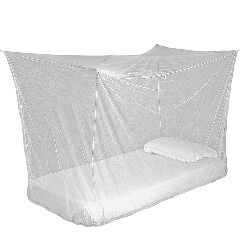 Moskytiéra pro 1 osobu ve tvaru kvádru se 4 závěsnými body. Může být zavěšena pomocí všech 4 bodů nebo pomocí pouze 2 bodů. Je vyrobena z bílé síťoviny s hustotou zhruba 30 otvorů na 1 cm2. Balení obsahuje 4 háčky na zavěšení.