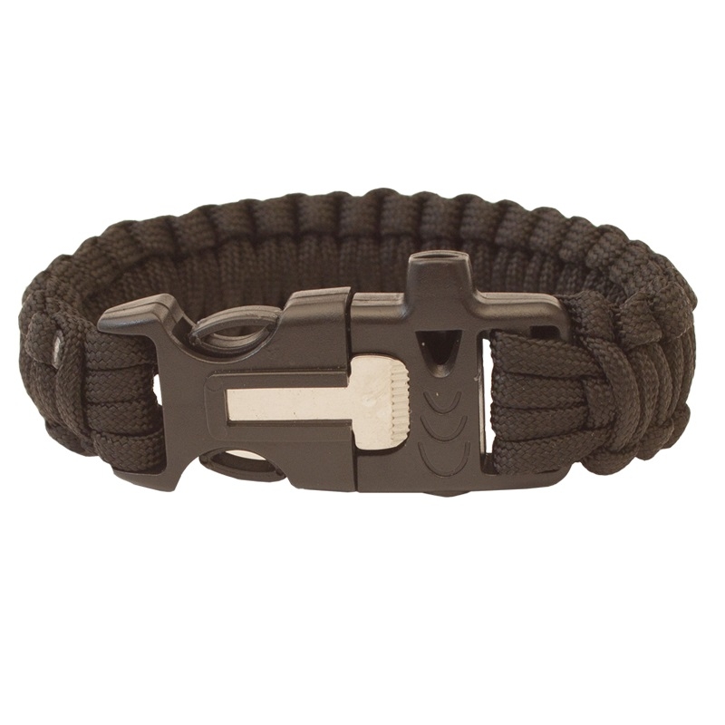 Náramek upletený z kvalitní nylonové šňůry, jejíž nosnost je až 250 kg. Náramek je spojen plastovou sponou (trojzubec), ve které je zabudovaná píšťalka a křesadlo pro rozdělání ohně. Náramek můžete v případě potřeby rozmotat a šňůru použít ke stavbě přístřešku, pro nouzové slaňování nebo jako náhradní tkaničky do bot. Délka po rozmotání je 2,5 m.