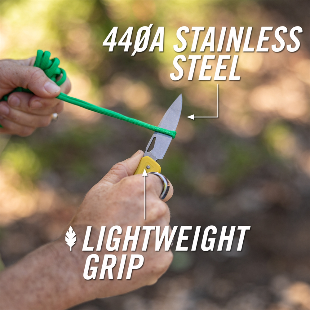 Rukojeť z nylonu vyztuženého skelnými vlákny (glass-filled nylon) je extrémně lehká a zároveň dostatečně pevná. Díky tomu je nůž velmi pohodlný na nošení a téměř o něm v kapse nevíte.