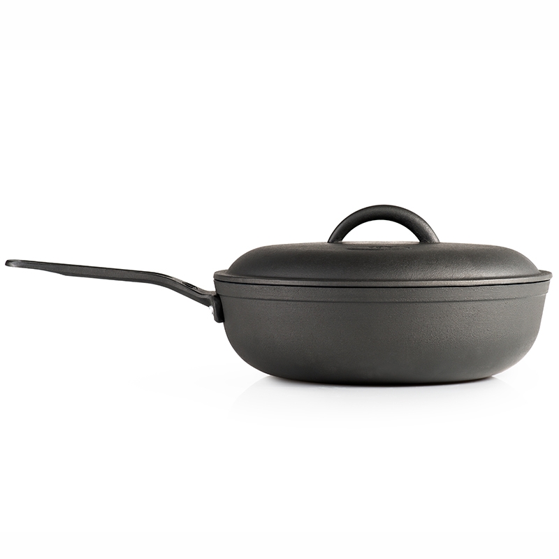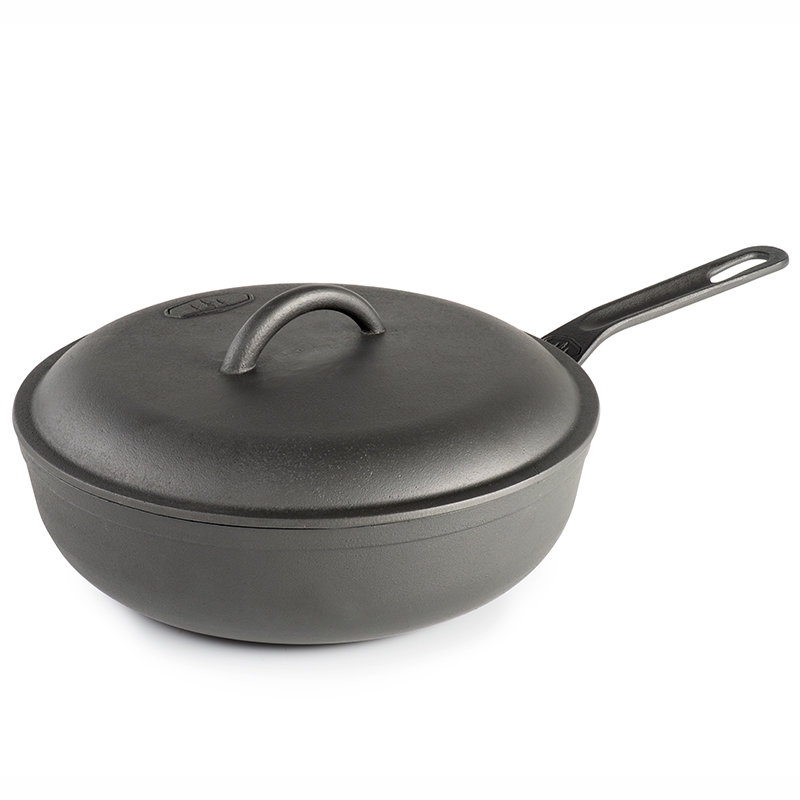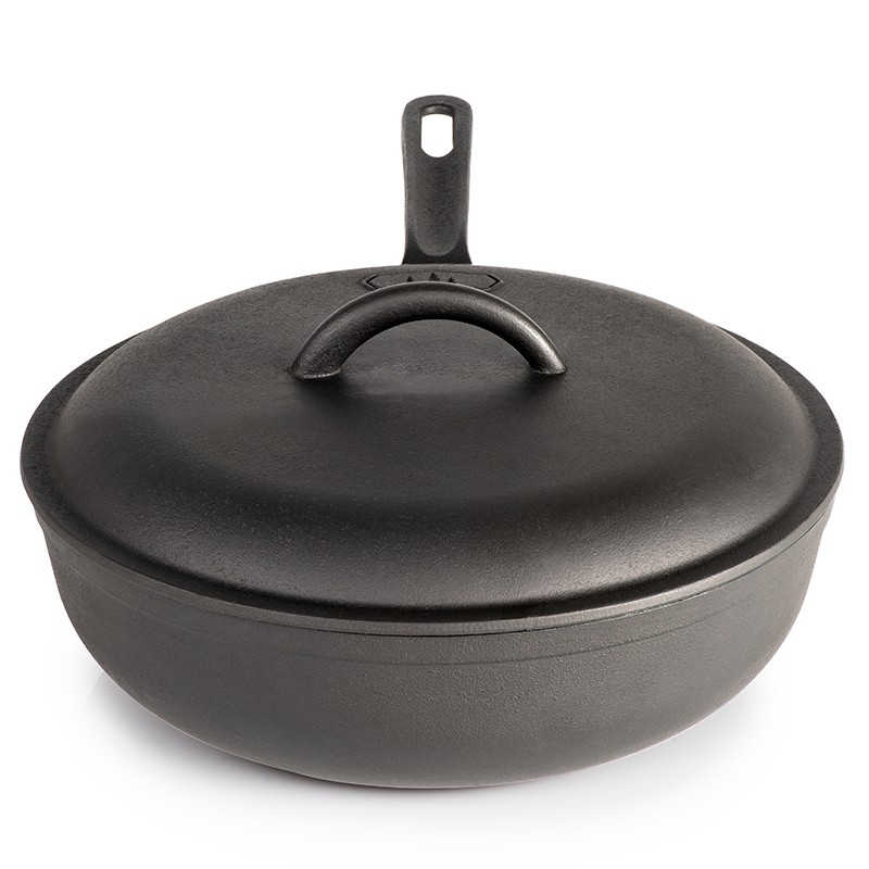 Hluboká litinová pánev s poklicí, vhodná pro vaření venku i doma. U Guidecast Frying Deep Pan jistě kromě perfektního rozvodu tepla oceníte i nízkou hmotnost, která je o 20-40% nižší než běžně prodávané litinové pánve. Nitridovaný povrch trouby zajišťuje stálou odolnost proti korozi. Pánev je vhodná pro všechny typy varných povrchů, včetně indukce. Perfektní rozvod tepla. Poklička součástí. Hloubka pánve 13cm.