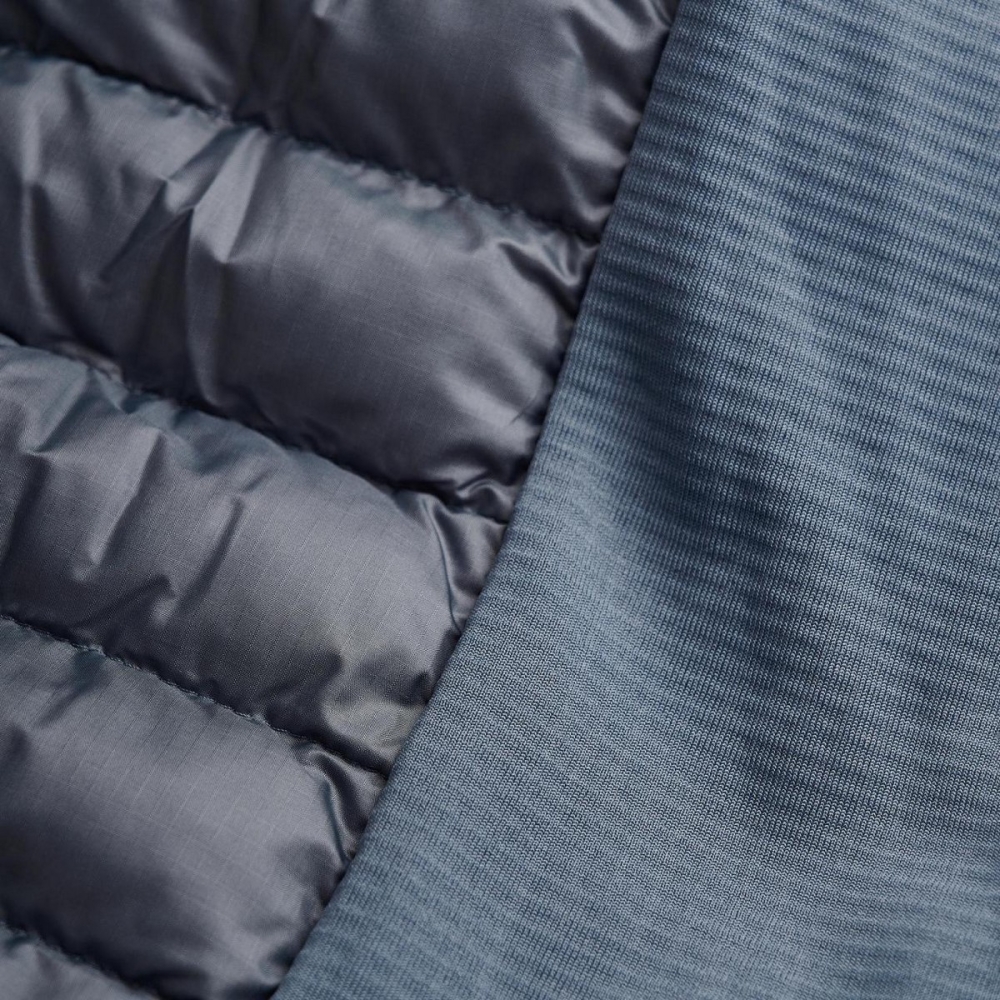- Izolace a materiál: Bunda je vyplněna 100% recyklovaným materiálem Primaloft Silver Insulation, který poskytuje stejnou úroveň tepelné izolace jako přírodní peří, ale zároveň má výhodu rychlého schnutí, což je důležité pro aktivity ve vlhkých podmínkách. Tento syntetický materiál je navíc šetrný k životnímu prostředí.