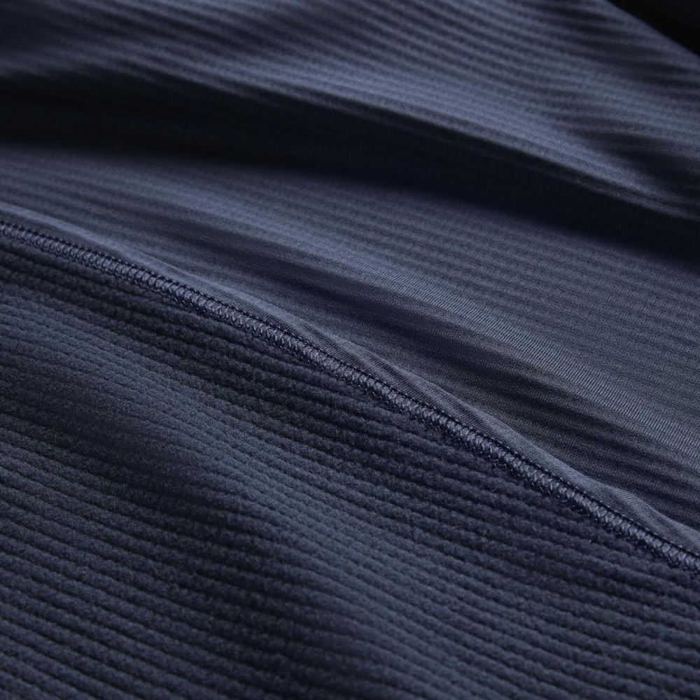 Materiál THERMO GRID Lite se vyznačuje nízkou hmotností a rychleschnoucími vlastnostmi, čímž zajišťuje maximální komfort a pohodlí. Elastan v materiálu umožňuje volnost pohybu a česané vlákno na vnitřní straně poskytuje příjemnou hřejivost. Hladký povrch na vnější straně usnadňuje údržbu mikiny.