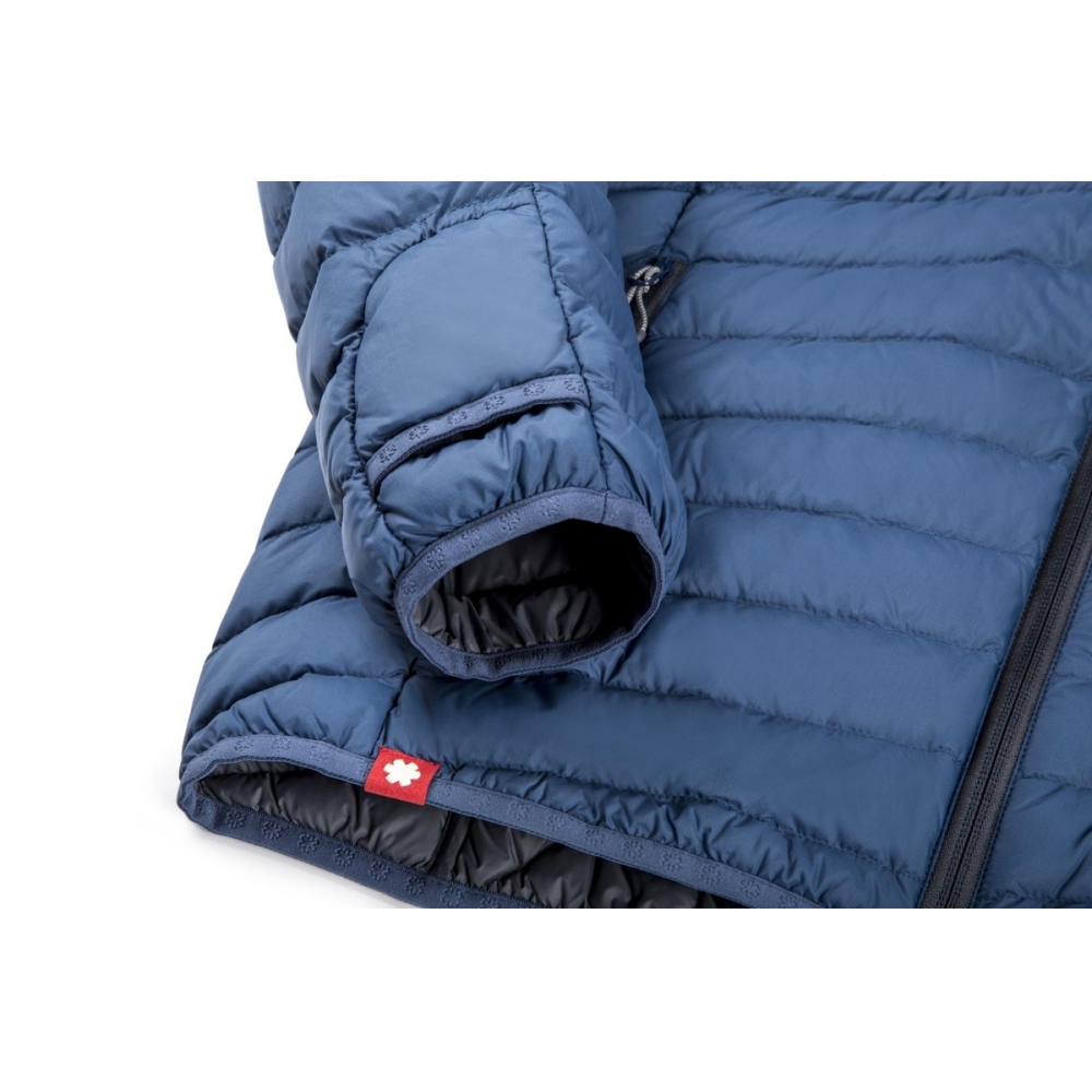| Materiál | 100 % Recyklovaný Polyamid (DWR), Rip-Stop, Peří 90/10 - 650 cuin |
