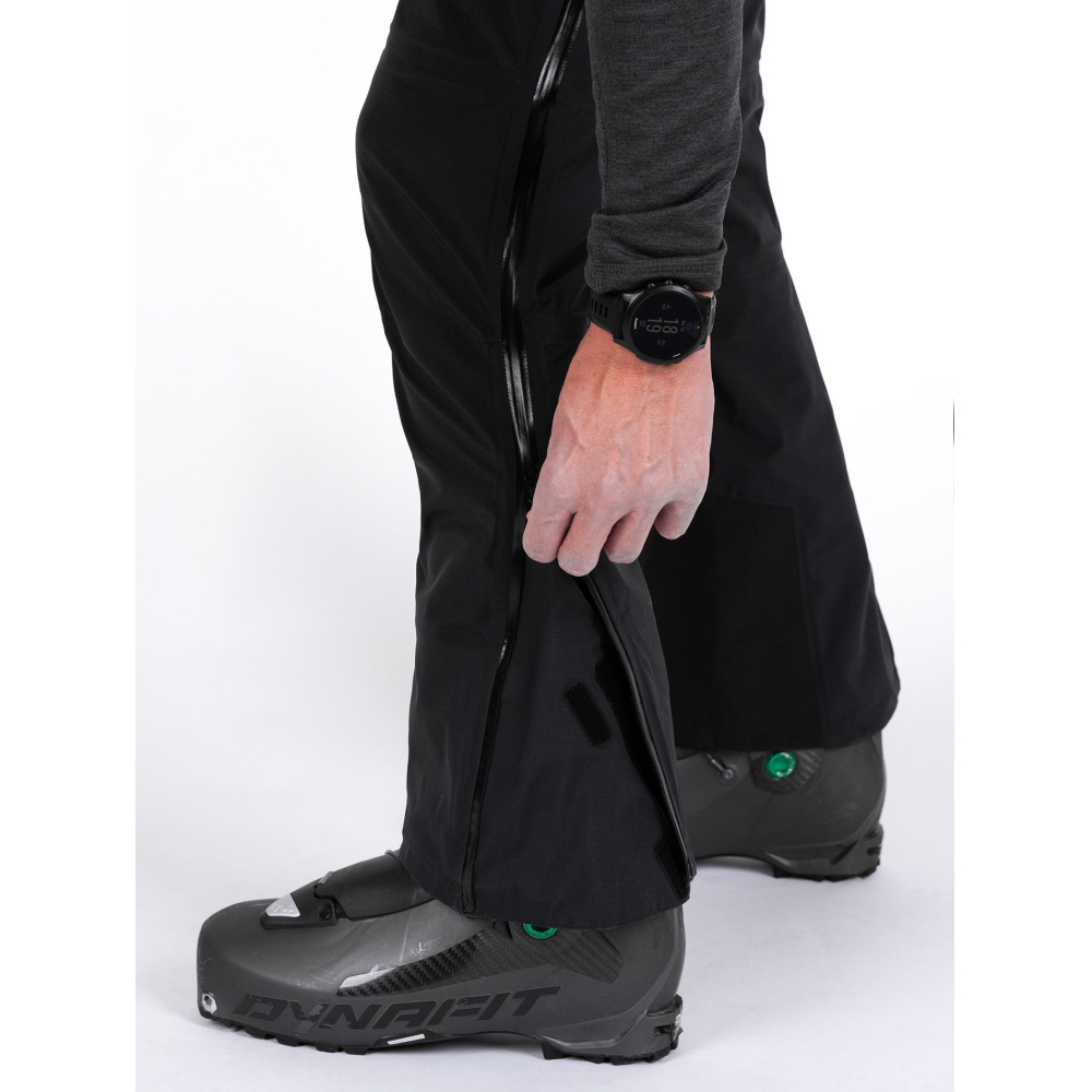 Díky perfektně padnoucímu střihu a mírné elasticitě poskytují maximální pohodlí i svobodu pohybu. Dvě prostorné boční kapsy na zip pojmou všechny nezbytnosti, zatímco spodní klín umožňuje rozšíření nohavic – ideální pro použití se skialpovými botami. Vnitřní lem nohavic je vyztužen ochranným materiálem, který zabraňuje poškození od hran lyží nebo maček.