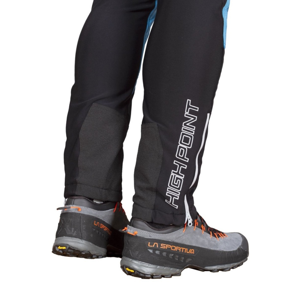 Obvod pasu lze jednoduše regulovat pomocí opasku a speciální opaskové spony HIGH POINT. V zadní horní části kalhot najdeš praktickou kapsičku na zip. Kalhoty jsou vybaveny poklopcem. Vnitřní oblast kotníků je chráněna speciálním materiálem eliminujícím poškození v tomto exponovaném místě.