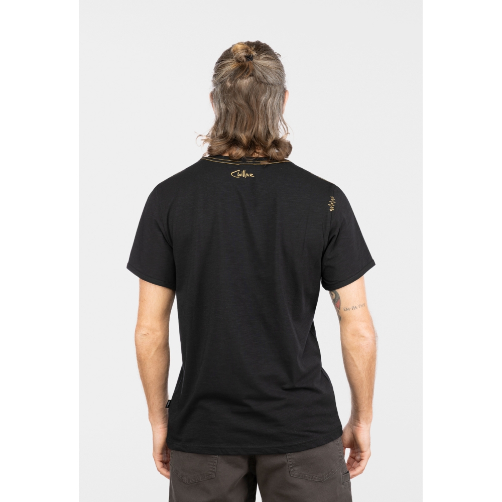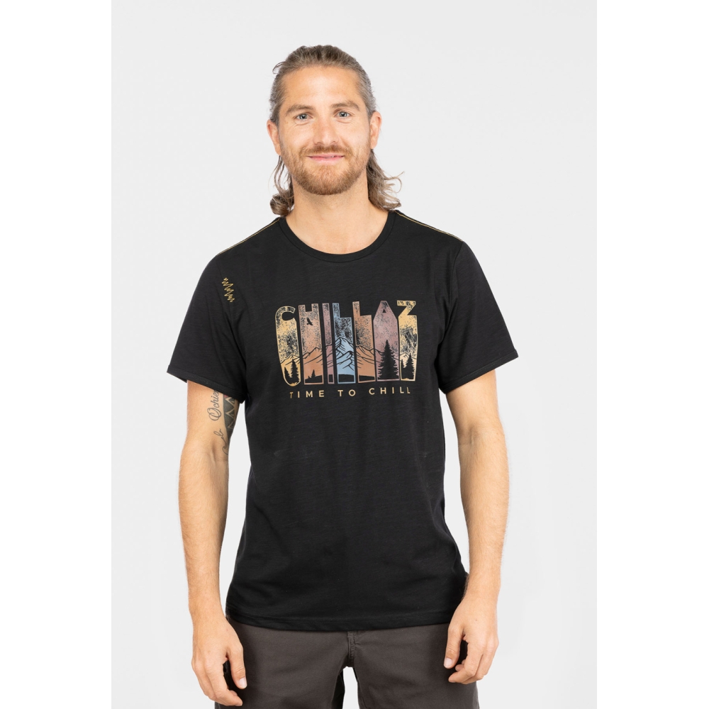 Připravte se na dobrodružství s pánským tričkem Chillaz. Pohodlné, udržitelné a stylové s ručně kresleným potiskem, ideální na lezení i každodenní nošení.