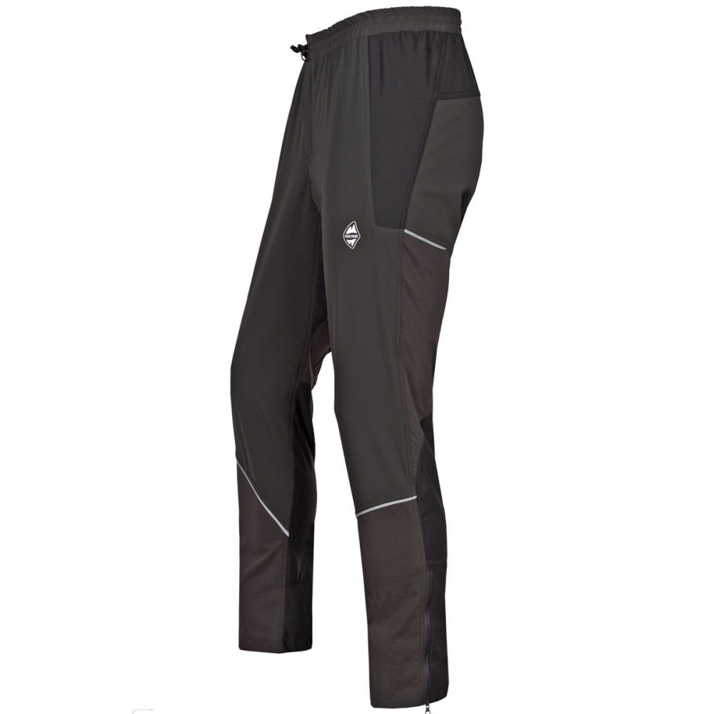 Kalhoty jsou důmyslně poskládané ze tří různých elastických materiálů, z nichž každý plní přesně to, co je v dané oblasti potřeba. Bylo tak dosaženo maximálního komfortu i při zcela anatomickém střihu přesně na tělo a optimální funkčnosti v daných oblastech. V horní části je použitý čtyřcestně elastický softshell, který se dokonale přizpůsobí pohybu, je výborně prodyšný, ale zároveň dostatečně větruodolný. Na holeních a zadní části stehen je použitý tenčí materiál a v lýtkové části, pod opaskem a krokovém klínu, je extrémně prodyšná a elastická lycra. Kalhoty jednoduše oblečeš díky elastickému pasu, který se výborně přizpůsobí a je pohodlný. V případě potřeby můžeš dotáhnout šňůrkou a zafixovat brzdičkou. Šňůrku lze zkrátit na požadovanou délku. V zadní horní části kalhot najdeš praktickou kapsičku na zip. Pro bezpečnost za špatné viditelnosti jsou v holení a zadní části všité reflexní paspulky. Nohavice lze ve spodní části rozepnout a pomocí všitého klínu, pokud je potřeba, přetáhnout i přes širší obuv. Všitá protiskluzová guma pomůže fixovat nohavici ve stabilní poloze. Materiál má povrchovou vodoodpudivou úpravu řešenou ekologicky - neobsahuje fluorocarbony (PFC FREE). Kalhoty využiješ na naprostou většinu outdoorových aktivit (turistika, běh, lezení, ferraty, běžky, skialpy….).
