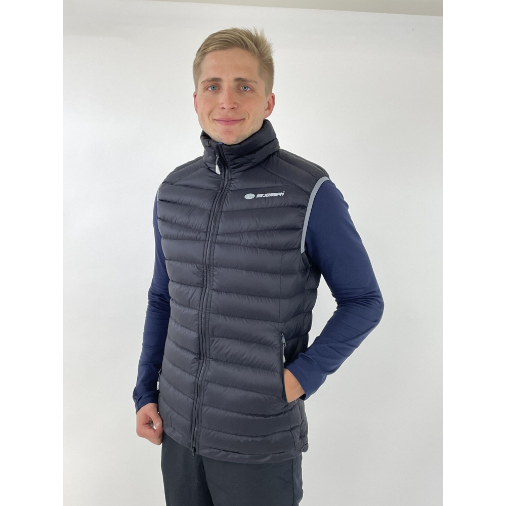 Lehká, sbalitelná, praktická a univerzální pánská péřová vesta.