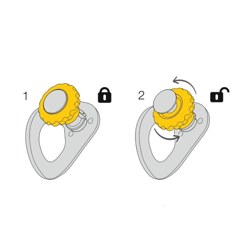 Lehký a opakovaně použitelný nýt z nerezové oceli pro rychlé kotvení bez nářadí. Plaketa se volně otáčí a zajišťovací knoflík brání náhodnému vyjmutí — ideální pro lanové systémy a karabiny.