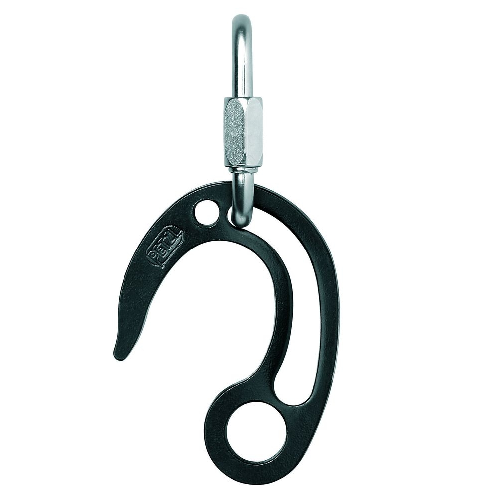 Háček na polohování, postup, pro tahací vak. Do spodního otvoru se zavěšují smyčky, žebříčky nebo tahací vak. Do podlouhlého otvoru se připojuje maticovou karabinou Maillon Rapide N°5 vytahovací lano. Maticová karabina se v otvoru volně pohybuje a umožňuje tak vyháknutí háčku shora.