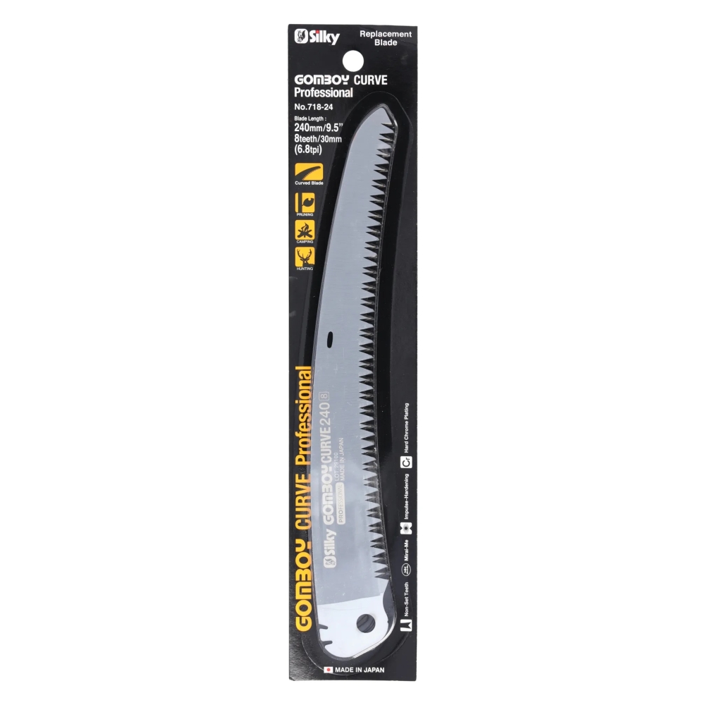 Pilový list pro Silky Gomboy Curve Professional 240 mm je originální náhradní list určený pro profesionální skládací pilku Gomboy Curve. Díky preciznímu broušení zubů a kvalitní oceli zajišťuje hluboké, rychlé a čisté řezy u dřeva i tvrdších větví.