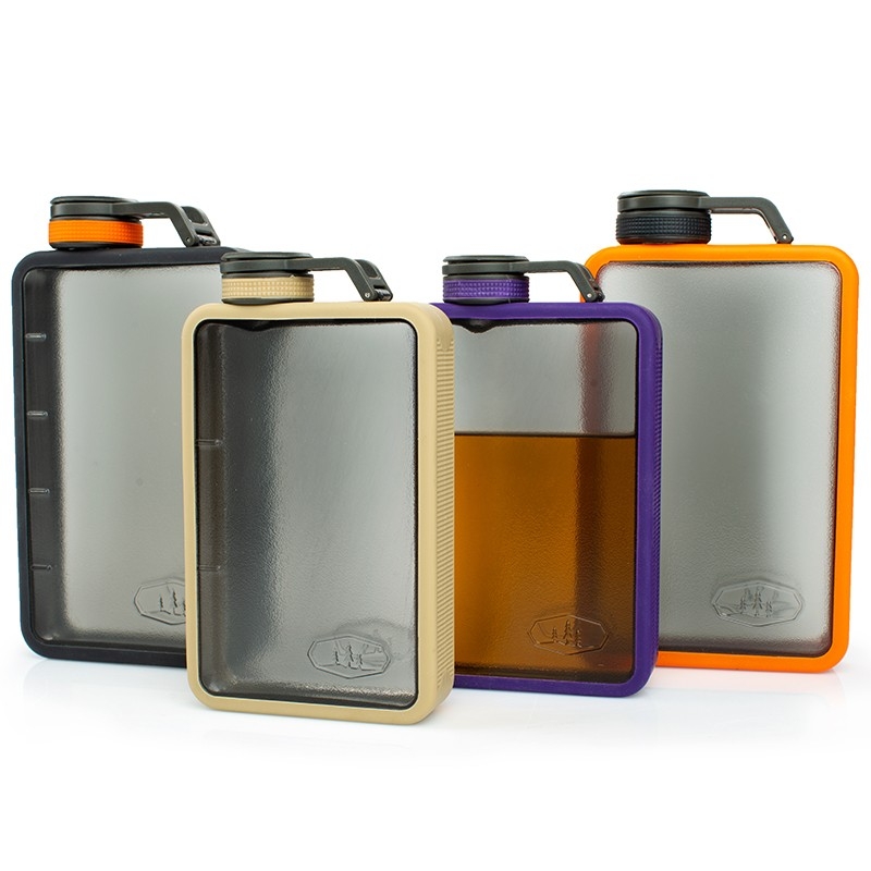 Boulder Flask je stylová průhledná placatka z velmi odolného plastu. Gumové "luby" zaručují jednoduché a pevné uchopení. Uzávěr se širokým hrdlem umožňuje snadné a rychlé plnění a jednodušší vymývání. Díky pogumovanému obvodu uzávěru se dá placatka snadno otevřít i v rukavici. Průhledný design nese výhody v přehledu při plnění nápojem i jeho následném ubývání.