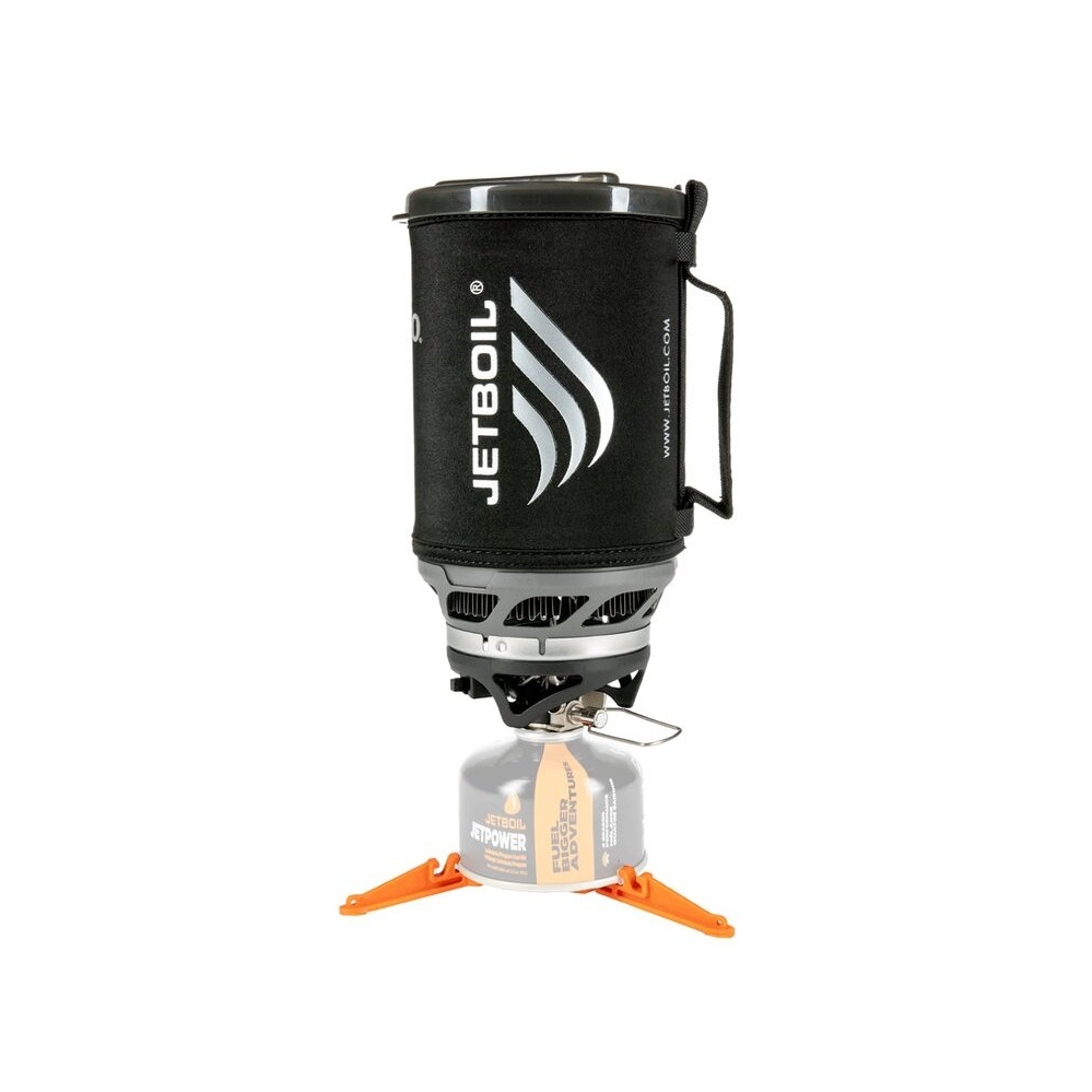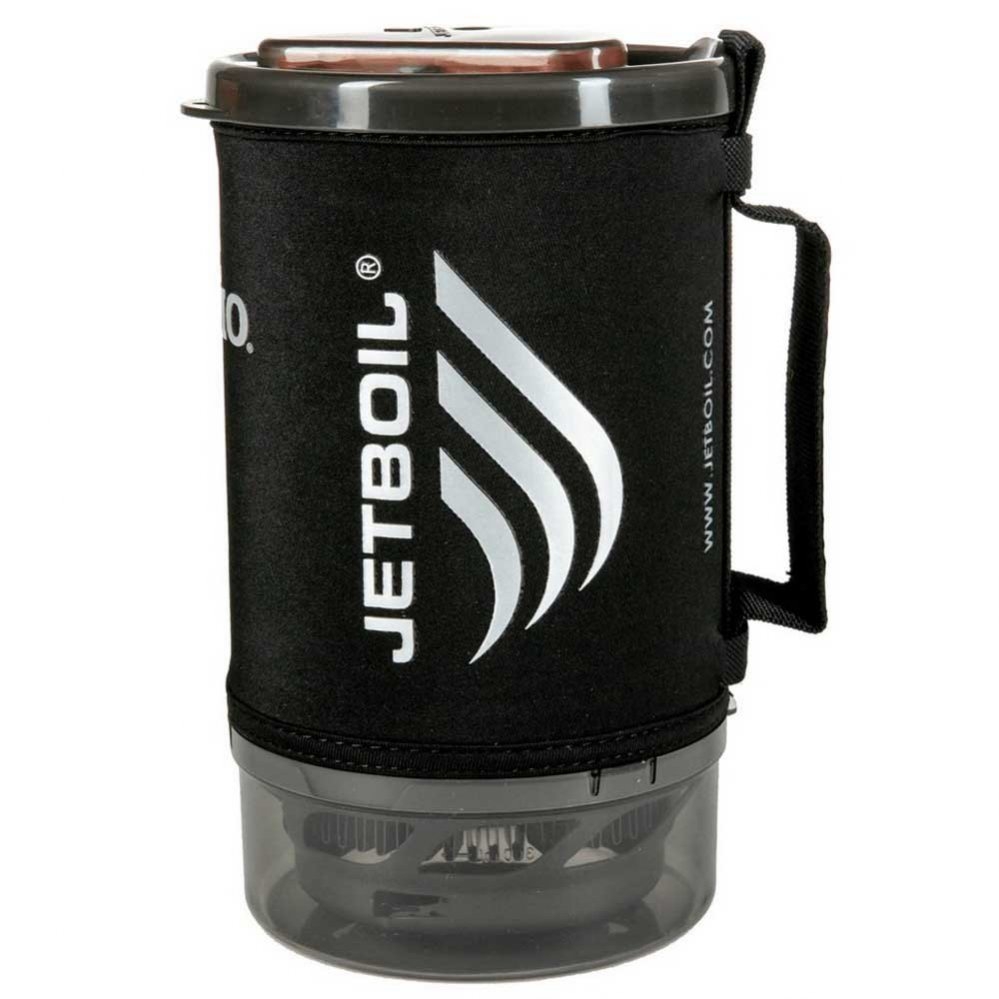 Nádoba díky lisovanému aretačnímu systému sedí pevně na vařiči, takže nehrozí žádné náhodné vylití. Tepelný výměník na dně nádoby, který firma Jetboil vymyslela, výrazně zabraňuje úniku tepla a zvyšuje účinnost vařiče a snižuje spotřebu plynu.
