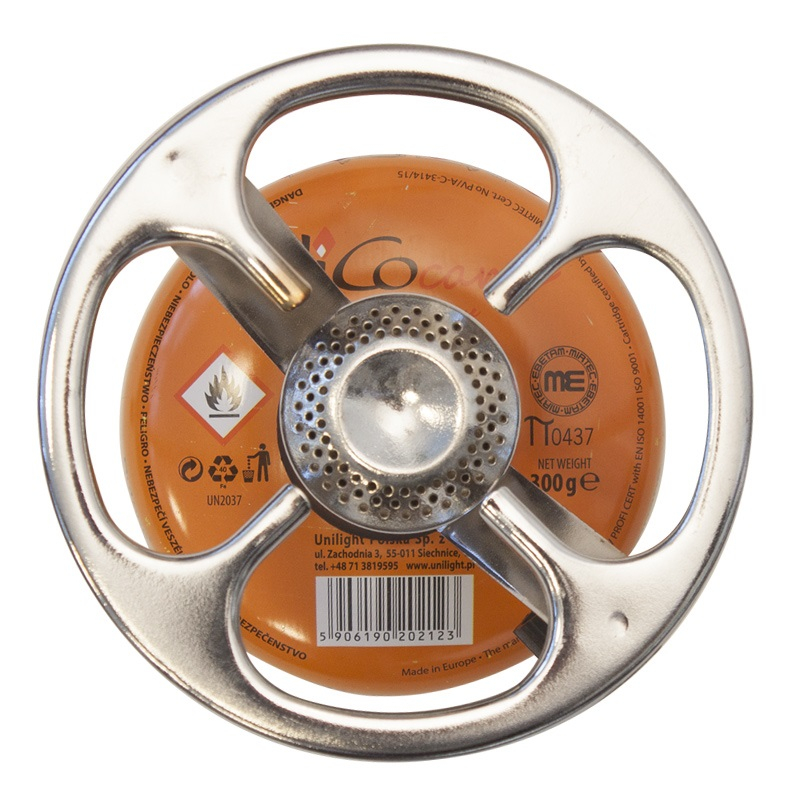 Plynový vařič se závitem určený na plynové kartuše se závitem 7/16´´. Vhodný na turistiku, do kempu, mototuristiku atd. Výhoda těchto vařičů je, že po použití je lze vždy oddělit od kartuše a tím nezaberou moc místa. Průměr plotýnky 125 mm vytváří dostatečnou plochu i pro větší hrnec. Kartuše na tento vařič lze dokoupit téměř kdekoli na světě.