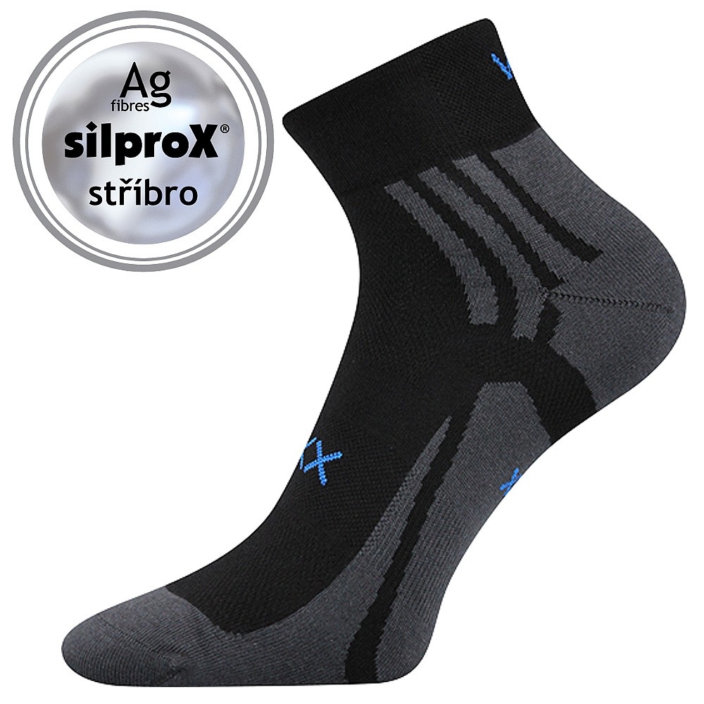 Tenké dámské a pánské sportovní ponožky VoXX® ABRA můžete nosit po celý den. Ponožky mají prodyšné zóny. Volný lem nohu nestahuje. 200 jehlový úplet je velmi jemný a hladký a řetízkovaná špice nikde netlačí. Díky materiálu SilproX® s ionty stříbra, které působí antibakteriálně, je značně omezena tvorba bakterií a plísní. Bakterie jsou stříbrem přirozeně zničeny a nedochází pak k tvorbě zápachu. Ponožky v teplotní třídě A jsou vhodné do rozmezí teplot od +10°C do +35°C.