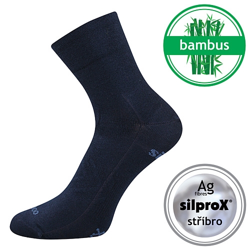 Dámské-pánské sportovní ponožky, extra vyztužené chodidlo proti opotřebení, speciální - extra volný nestahující lem, řetízkovaná špice, materiál bambus s přirozenou antibakteriální ochranou, antibakteriální ochrana ionty stříbra v materiálu silproX, teplotní třída: A
