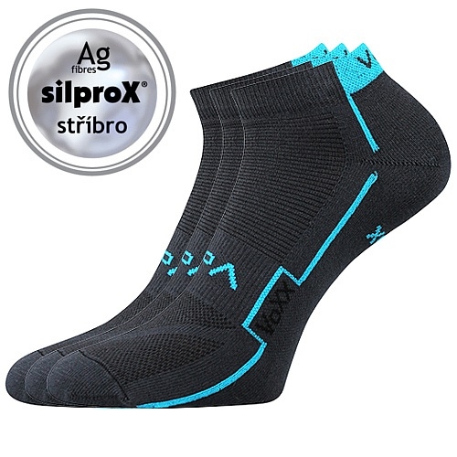 Extra prodyšné sportovní ponožky s ionty stříbra (zabraňují zápachu). Složení: 75% bavlna, 15% polypropylen silproX, 5% polyamid, 5% elastan.