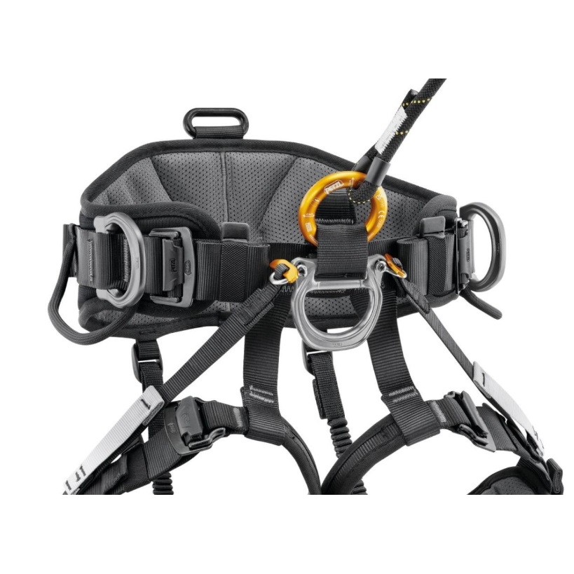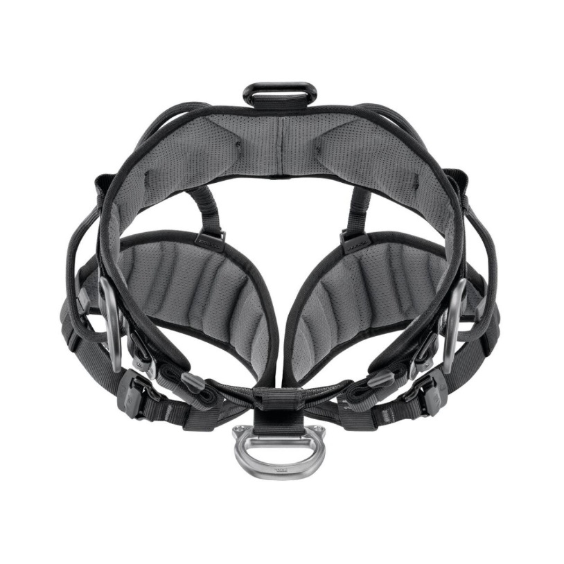 - Praktické uspořádání vybavení: Postroj je vybaven poutky na materiál, sloty pro nosiče materiálu a sklopnými kovovými postranními připojovacími body, které se při nečinnosti nezachytávají.