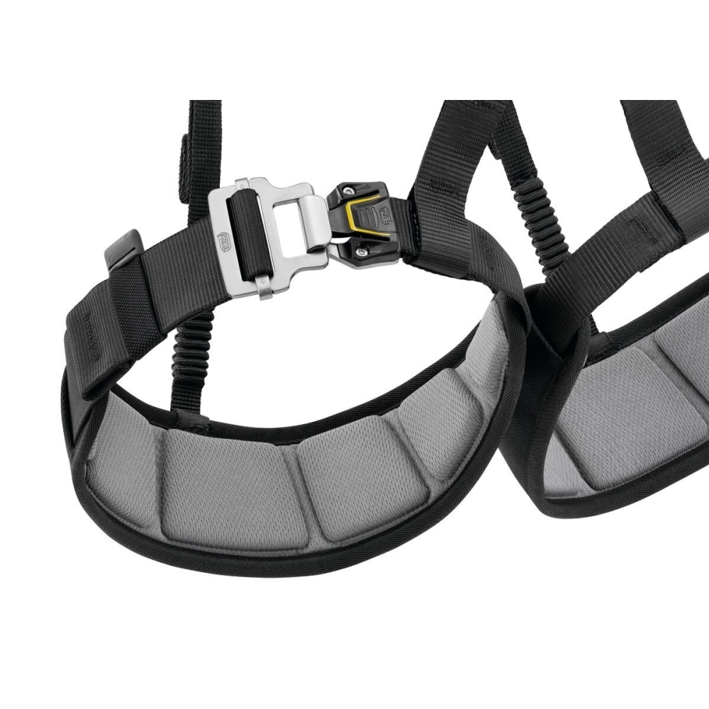 Přední připojovací bod rozkládá zátěž mezi pás a nožní popruhy při zavěšení. Polotuhý, tenký pás a nožní popruhy 3D pěnovou výstelkou poskytují optimální poměr pohodlí/hmotnosti a menší velikosti. Textilní postranní připojovací body pro příležitostné použití snižují velikost a hmotnost.