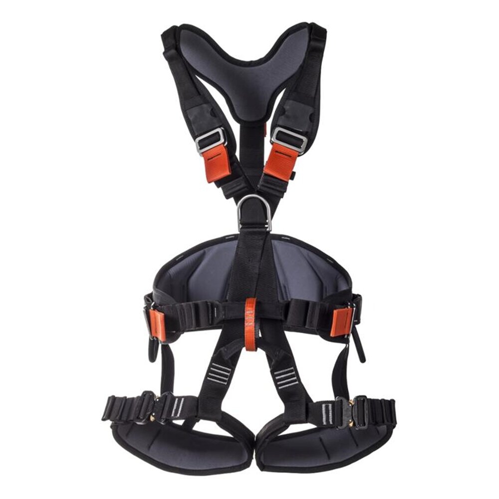 Plně nastavitelný a velice pohodlný celotělový postroj pro zachycení pádu a polohování, vytvořený speciálně pro potřeby výškových pracovníků na ropných plošinách. Rovněž se hodí pro sestup, výstup a záchranu. Díky komponentům z nerez oceli je úvazek ideální pro práci na mořských ropných plošinách (vlhké a slané prostředí). Polstrovaný bederní pás, ramena a nohavičky. Velmi pohodlný široký bederní pás zaručuje maximální komfort při práci ve visu. Přední navazovací bod pro zachycení pádu dle normy EN 361. Přední připojovací bod pro umístění slaňovacích pomůcek či polohování (EN 813, EN 358). Postranní připojovací body pro polohování pracovníka (EN 358). 3 velká poutka na materiál s nosností 5 kg. 4 malá textilní očka k připevnění brašny na nářadí. Těžší předměty do 35 kg lze zavěsit do nařaseného pevnostního popruhu na bederním pásu. Jemnější lemovka na polstrování v oblasti ramen neodírá krk uživatele. Reflexní proužek a potisk na bederním pásu zvyšují viditelnost postroje. Kombinace standardních spon a rychlých COBRA spon umožňuje plynulé a rychlé nastavení. Snadné upevnění hrudního blokantu CAM CLEAN ve vertikální poloze zajištěno pomocí všitého popruhu a spony. Popruh všitý do spon v pase a na ramenou usnadňuje nastavení a jeho barva pomáhá odlišit velikost postroje (S žlutá, M/L červená, XL černá).