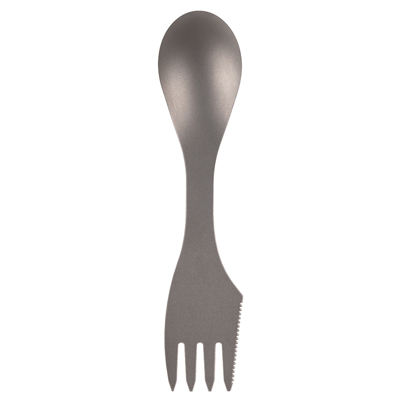 Multifunkční příbor (lžíce, vidlička, nůž) z ultralehkého a odolného titanu.