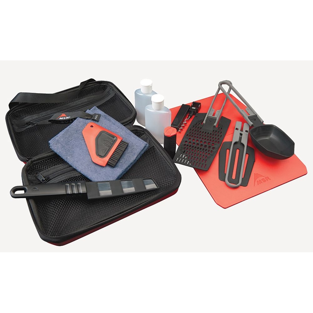 Nejobsáhlejší kuchyňská sada v praktickém kufříku pro vaření v basecampu. Pouzdro lze kdekoli zavěsit.