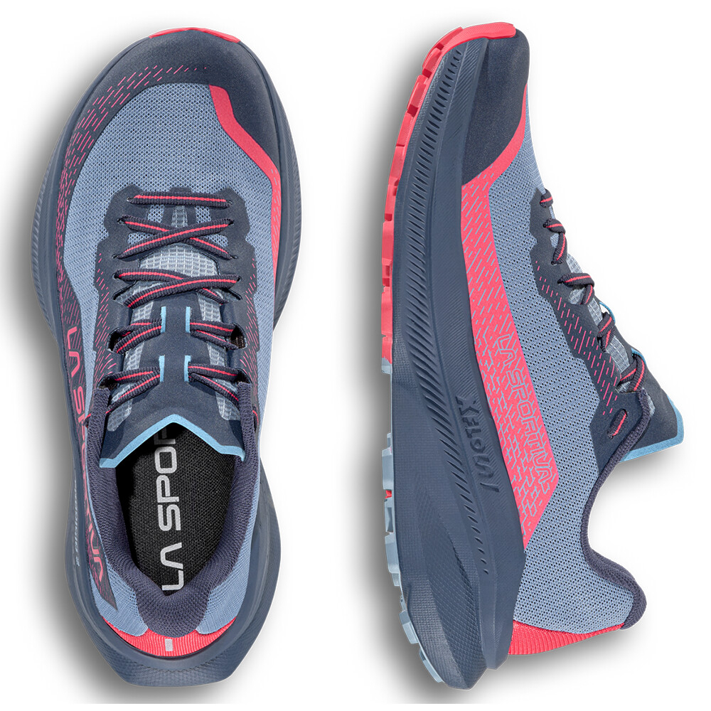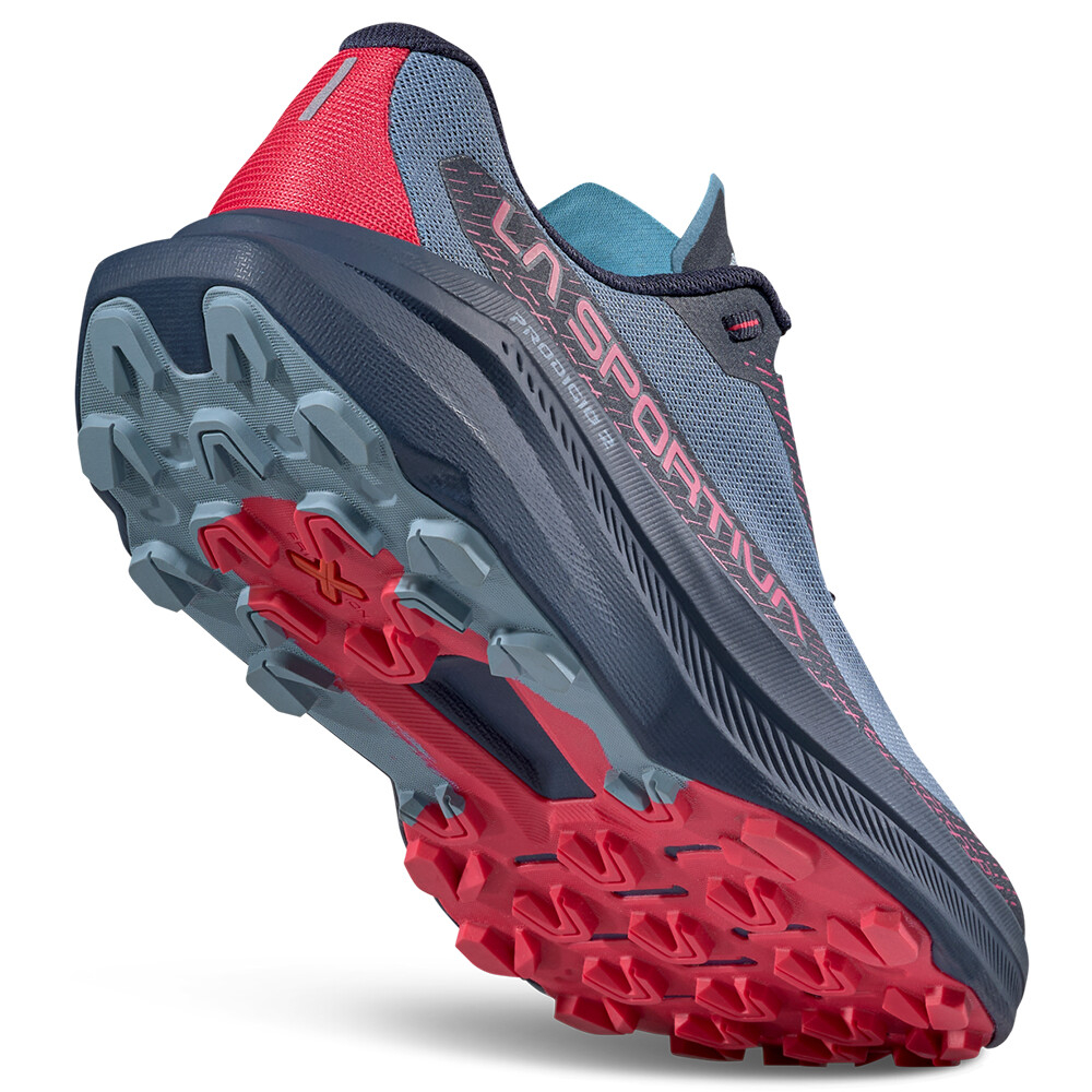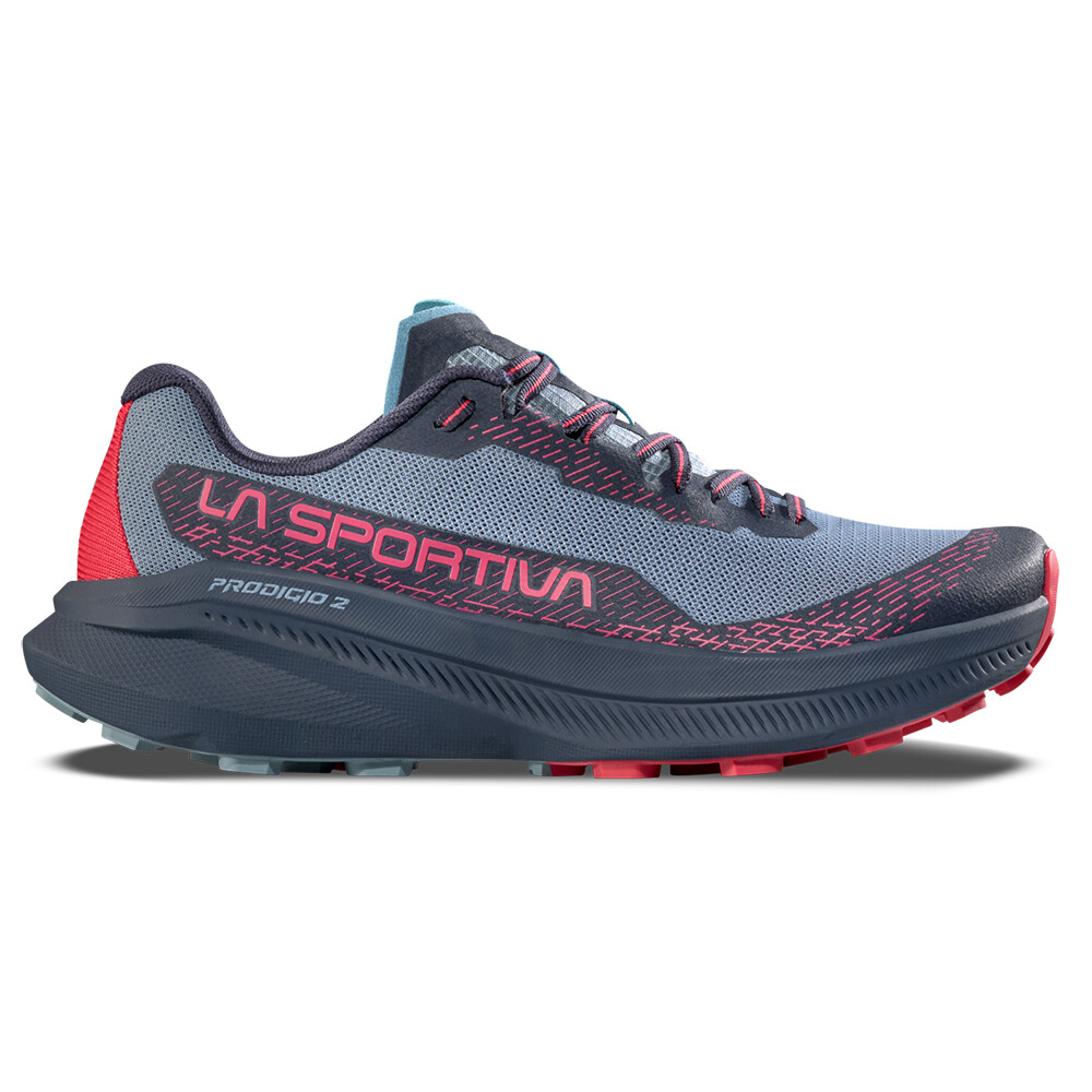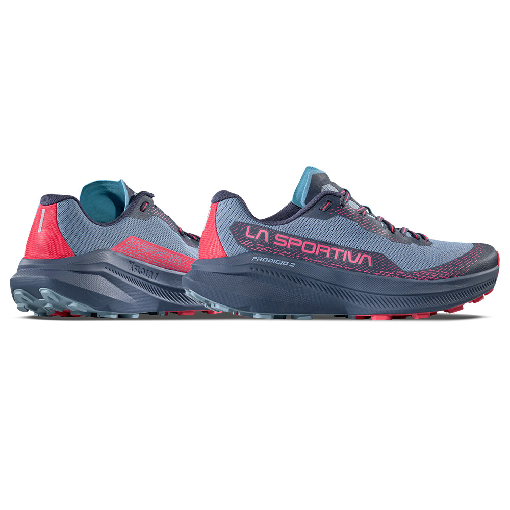Univerzální dámská trailová běžecká obuv La Sportiva Prodigio 2 v barvě Lake/Night Sky nabízí maximální komfort, tlumení a spolehlivý grip pro dlouhé běhy i technický terén. Ideální volba pro trénink i závody.