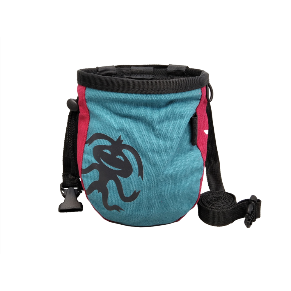 Praktický pytlík na magnesium klasického tvaru s výrazným logem Rafiki a stahováním na šňůrku. Přirozenou součástí je očko na kartáček a nezbytný pásek.