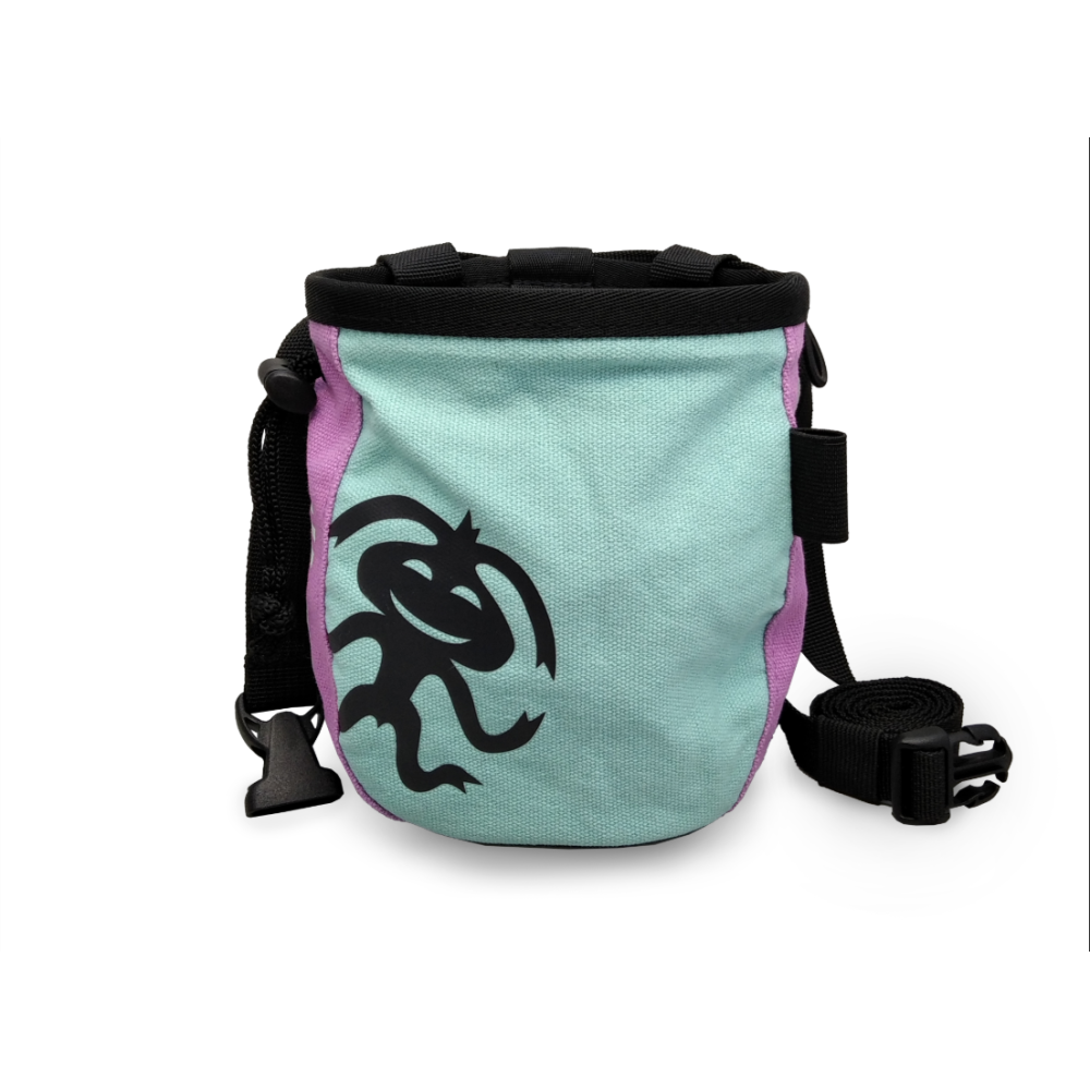 Praktický pytlík na magnesium klasického tvaru s výrazným logem Rafiki a stahováním na šňůrku. Přirozenou součástí je očko na kartáček a nezbytný pásek.