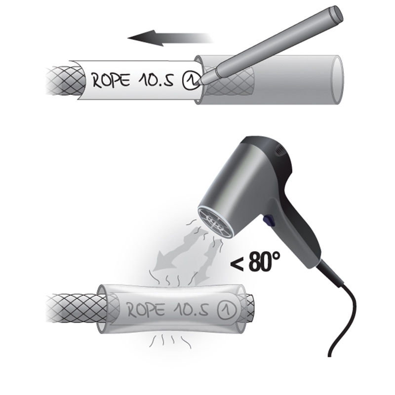 Rope End Kit je sada pro označování konců lan. Sada obsahuje štítky pro označení konce a smršťovací krytku. Toto označení je velice odolné proti zbroušení a je vodě odolné.