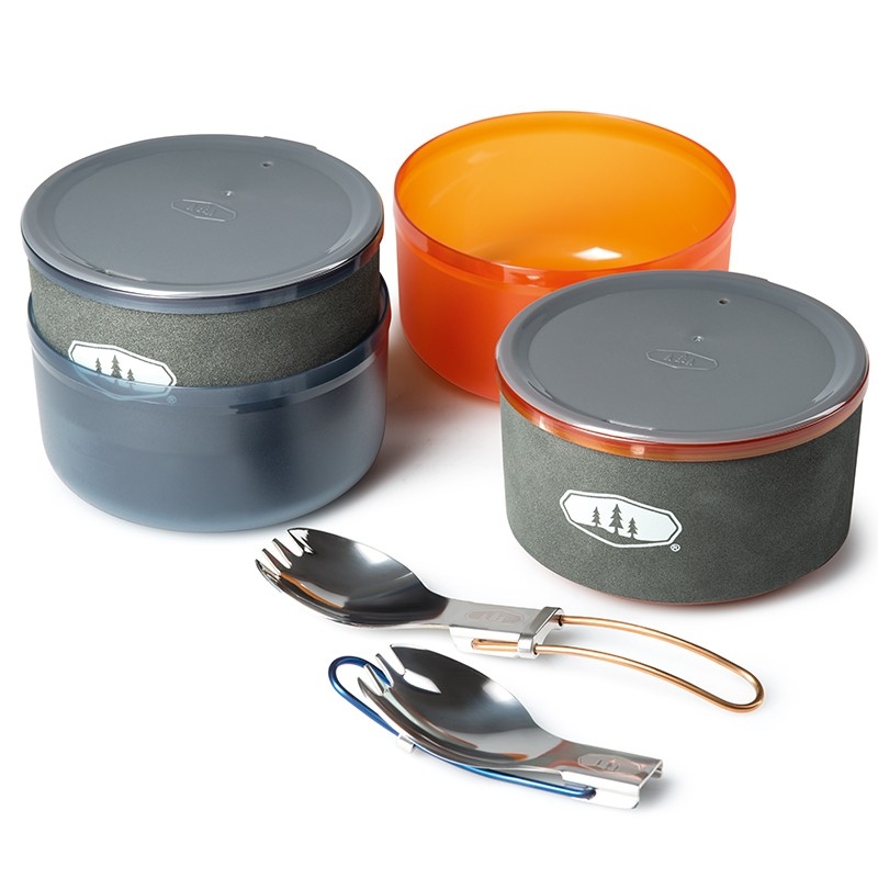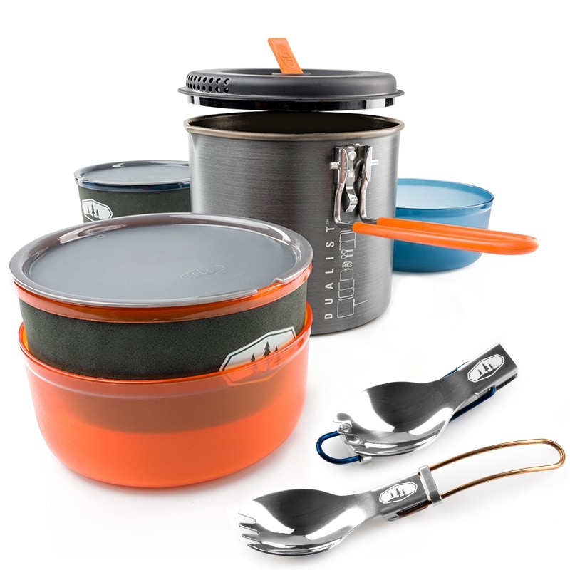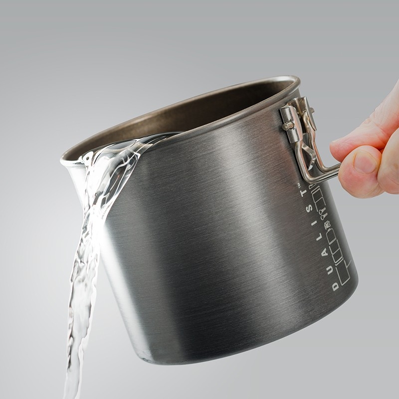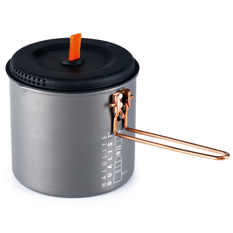 Halulite Dualist je sada nádobí pro 2 osoby s hlavním 1,8l rendlíkem z tvrdě eloxovaného hliníku. Součástí sady jsou 2 misky, 2 hrnky s děrovaným víkem pro pití, 2 skládací lžícovidličky, perforovaná poklička pro scezení vody a obal na celou sadu, který slouží jako nádoba na vodu nebo umyvadlo. Celá sada se dá do hlavního rendlíku složit tak šikovně, že zbyde místo i pro plynovou kartuši GSI Isobutane Fuel 230g a plynový vařič GSI Pinnacle Canister Stove, které však nejsou součástí sady. Z dalších výhod této kompaktní sady rozhodně oceníte vyraženou vnitřní stupnici objemu na rendlíku nebo sklápěcí rukojeť, která po sestavení slouží jako zámek celé sady. Tvrdě eloxovaný hliník zabraňuje oxidaci, je mechanicky odolný a skvěle rozvádí teplo do celé své plochy. Vyražená vnitřní stupnice objemu. Obal / umyvadlo na sadu. Odolný a snadno omyvatelný materiál.
