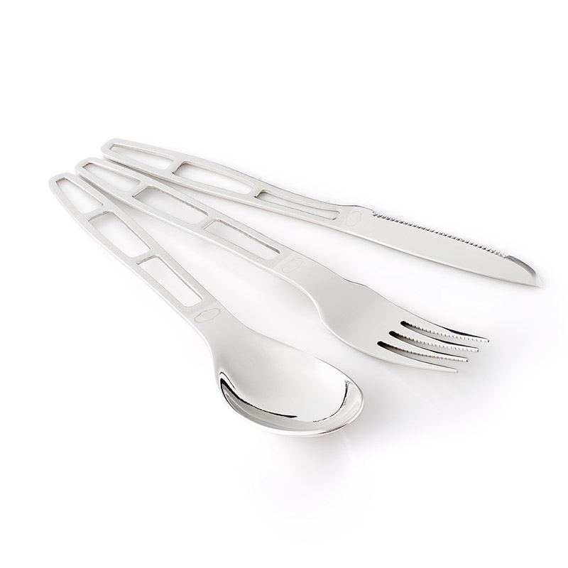 Set se skládá z vidličky, nože a lžíce. Lehký a praktický set vhodný na cestování, do kempu nebo na chatu.