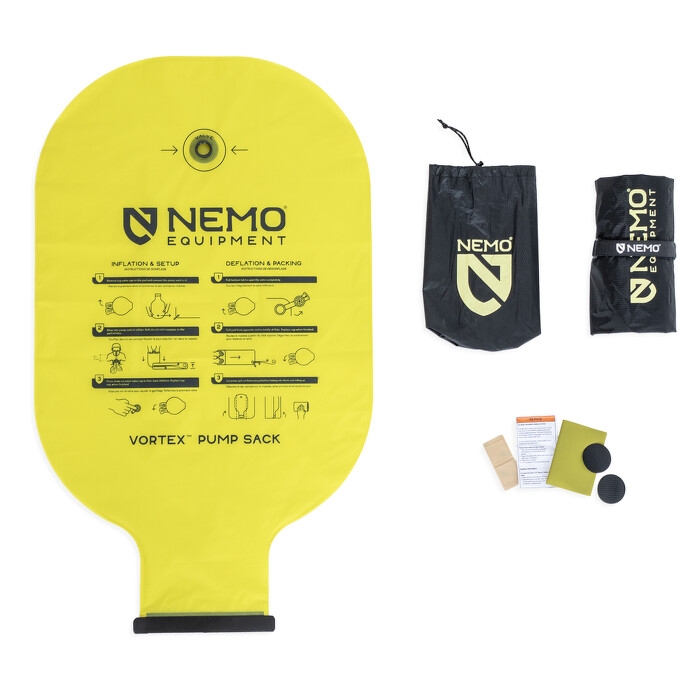 K nafouknutí můžete použít Vortex™ pump sack, který zabraňuje zbytečnému hromadění vlhkosti uvnitř karimatky. Odolnější materiál na spodní straně umožňuje používat karimatku i v drsnějším terénu.