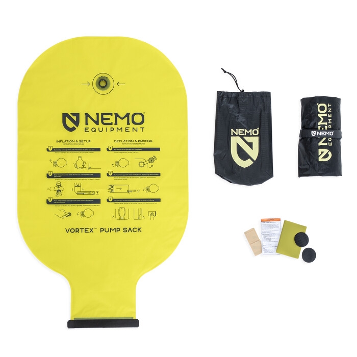K nafouknutí můžete použít Vortex™ pump sack, který zabraňuje zbytečnému hromadění vlhkosti uvnitř karimatky. Odolnější materiál na spodní straně umožňuje používat karimatku i v drsnějším terénu.