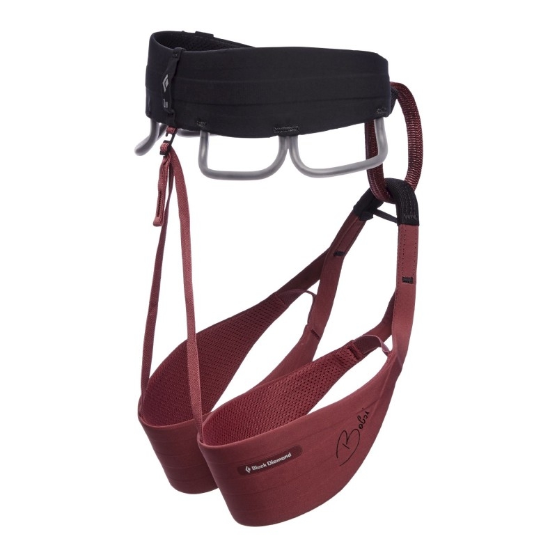 Dámská verze komfortního sedacího úvazku od firmy Black Diamond s Babsiinou oblíbenou barvou a jejím podpisem na nohavičce v moderním designu, který si oblíbí především sportovní lezci a lezkyně