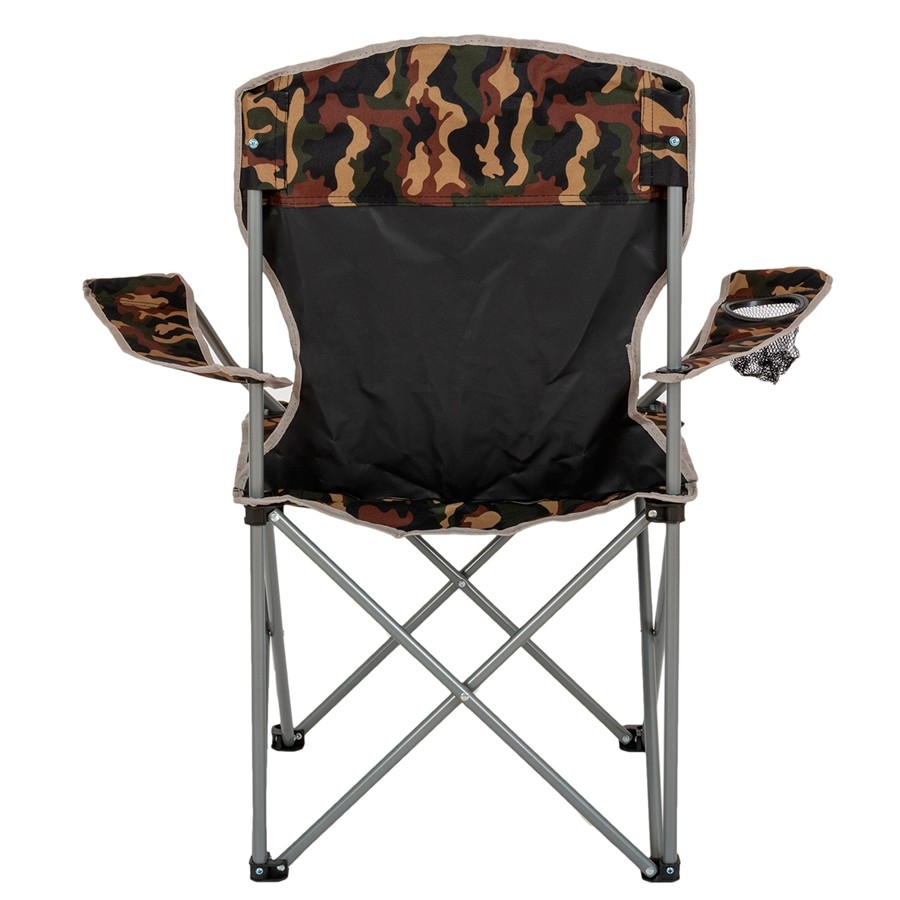 Skládací kempingová židle s opěrkami pro ruce pro pohodlné sezení kdekoli v přírodě. Pevná konstrukce. Nosnost: 110 kg.