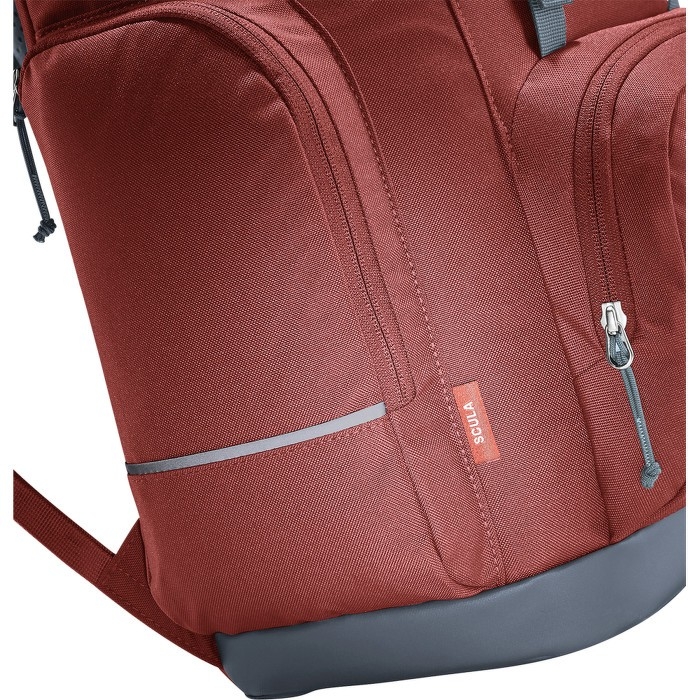 Školní batoh Scula v retro stylu se zádovým systémem Contact, díky kterému se zátěž školních potřeb rovnoměrné rozloží. Komfort nošení ještě umocní i ergonomicky tvarované ramenní popruhy, nastavitelný hrudní pás a odnímatelný bederní pás. Hlavní komora je doplněna o organizační přihrádky na školní potřeby a tablet. Batoh je vyroben ze 100% recyklovaného polyesteru, který je mnohem více udržitelnější a má přirozený vzhled. I proto má batoh certifikát Green Button. Ripstop je tkanina, která je obzvláště odolná proti roztržení. Dno batohu je odolné proti povětrnostním vlivům. Nechybí ani reflexní prvky pro vyšší bezpečnost. Ergonomicky tvarované ramenní popruhy Active Fit s měkkou úpravou okrajů. Popruhy pro nastavení zátěže. Nastavitelný hrudní pás a bederní pás. Boční kapsy na zip. Vnitřní organizér s kapsou pro bezpečné uložení cenností. Držák na brýle na ramenním popruhu. Klip na klíče.