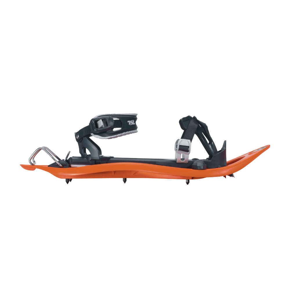 - Tři hladiny kontaktu se sněhem zabezpečují plnou funkčnost sněžnice bez ohledu na druh sněhu a v traverzech budeš mít jistotu. Na tvrdém sněhu a ledu jsou v kontaktu jen ostré hroty, ale pokud jdeš po ufoukaném sněhu, začínají zabírat i vylisované příčníky a sněžnice nepodkluzují. V měkkém zabírá celá plocha sněžnice včetně obloukového okraje a neboří se, ani nepodkluzují.