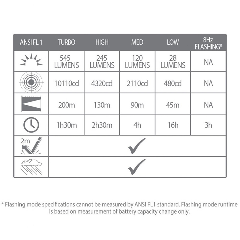 Spolehlivá a výkonná ruční svítilna s dlouhou výdrží a vysokou odolností. Díky výkonné bílé Nichia LED o svítivosti až 545 lumenů a dosvitu až 200 metrů je ideální pro každodenní použití i náročné outdoorové aktivity. Nabízí 5 světelných módů + blikání, hliníkové voděodolné tělo a dobíjecí Li-Ion baterii.
